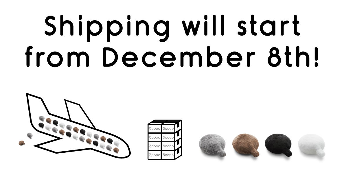 本日、Petit Qooboのグリ(灰色)、マロン(茶)、ノワール(黒)の一部を載せた航空便の第1便が日本に到着しました。ブラン(白)と他のカラーの残りを乗せたを第2便は追って12月8日(火)に到着予定です。