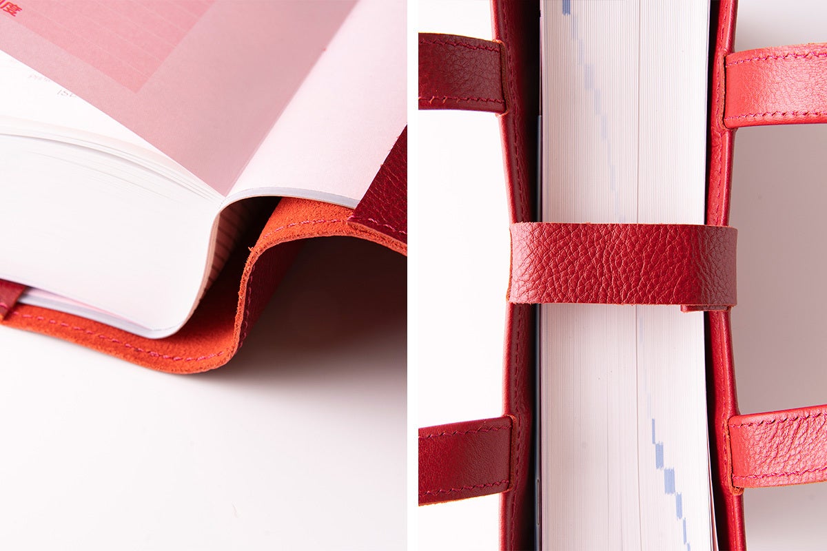 耐久性に富む牛革は、使ううちに手になじみ、レビューブックの内容が充実するにつれて、独特の風合いを醸し出します。