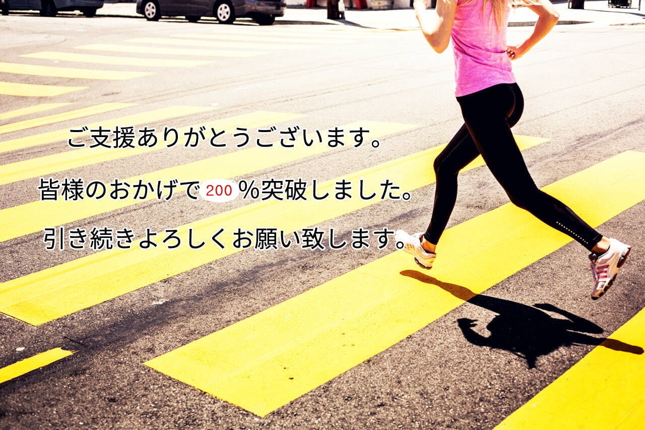 皆様のおかげをいただきまして、開始から200%を突破いたしました。