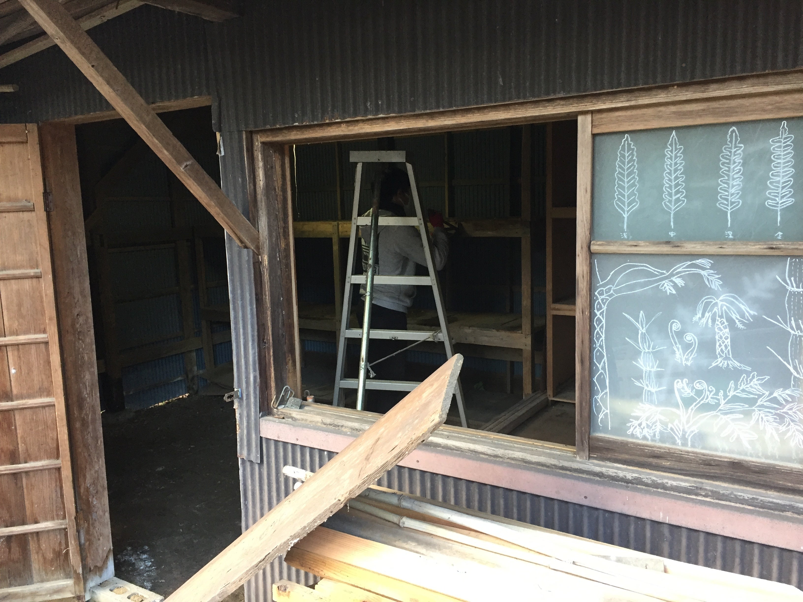 現在、「しだのこLabo」づくりは、仲間たちと不用品の処理や清掃をし終え、内装デザインを考えながら材料を集めているところです。