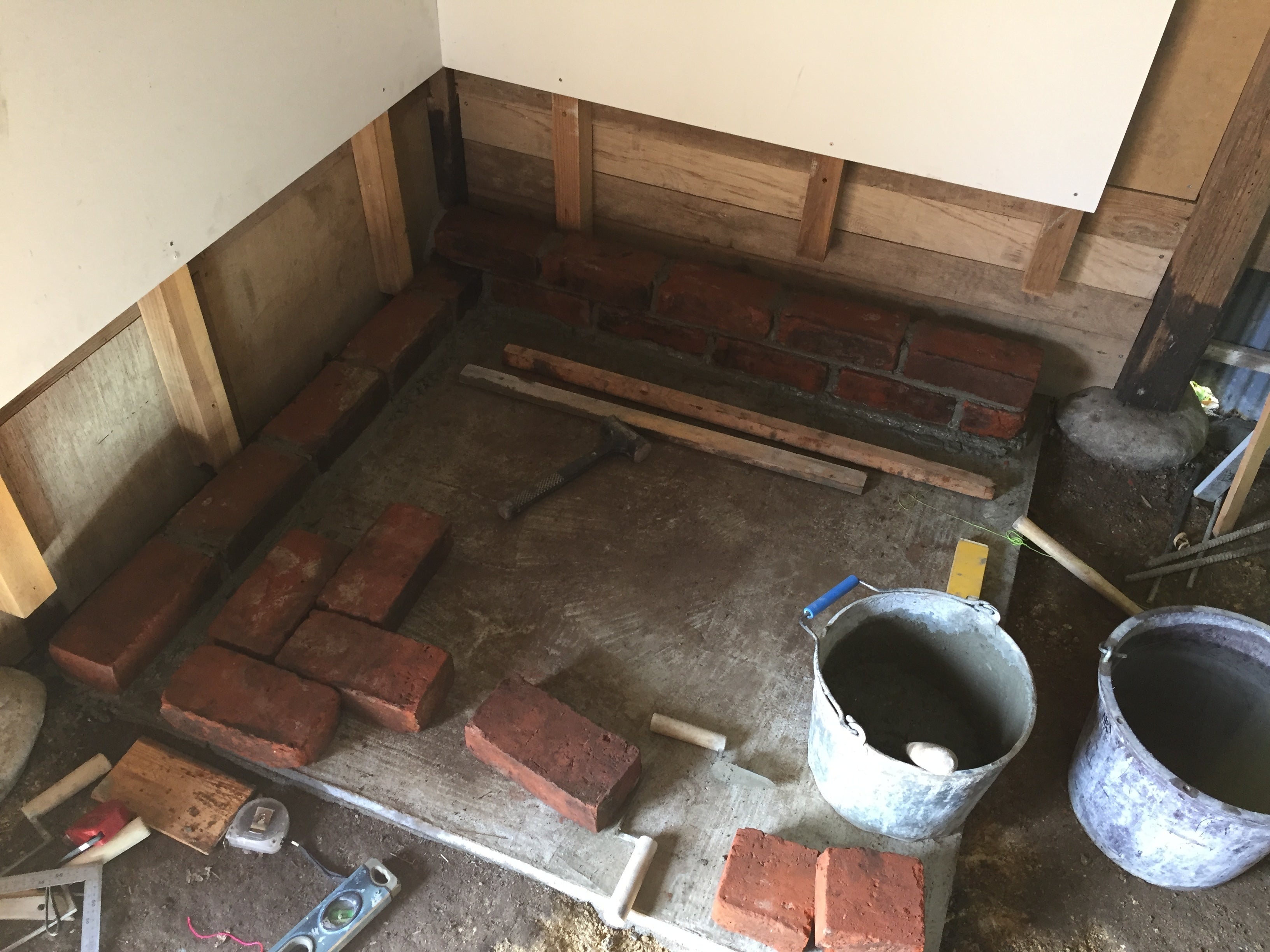 薪ストーブを設置する「炉台」が完成いたしました。