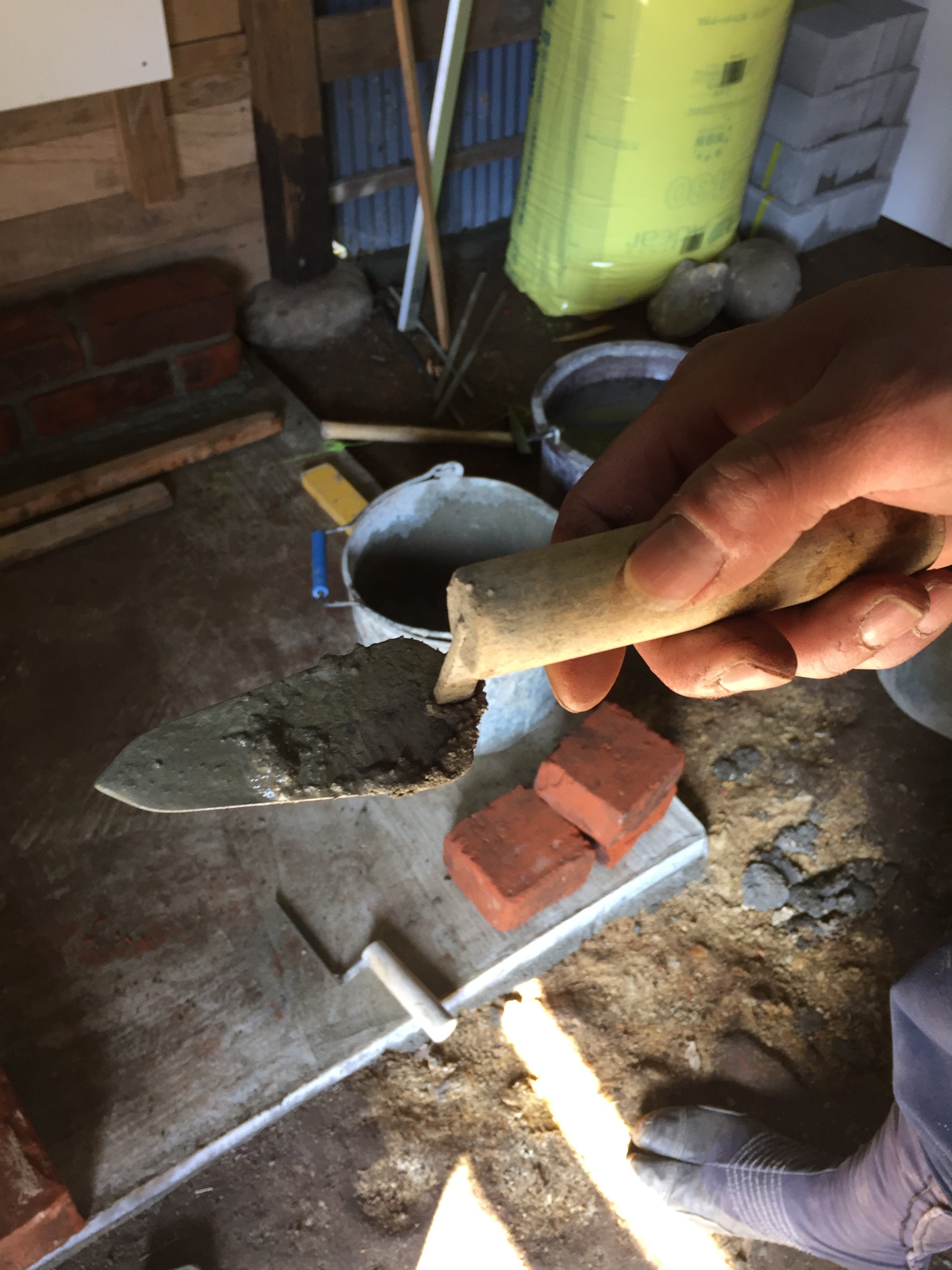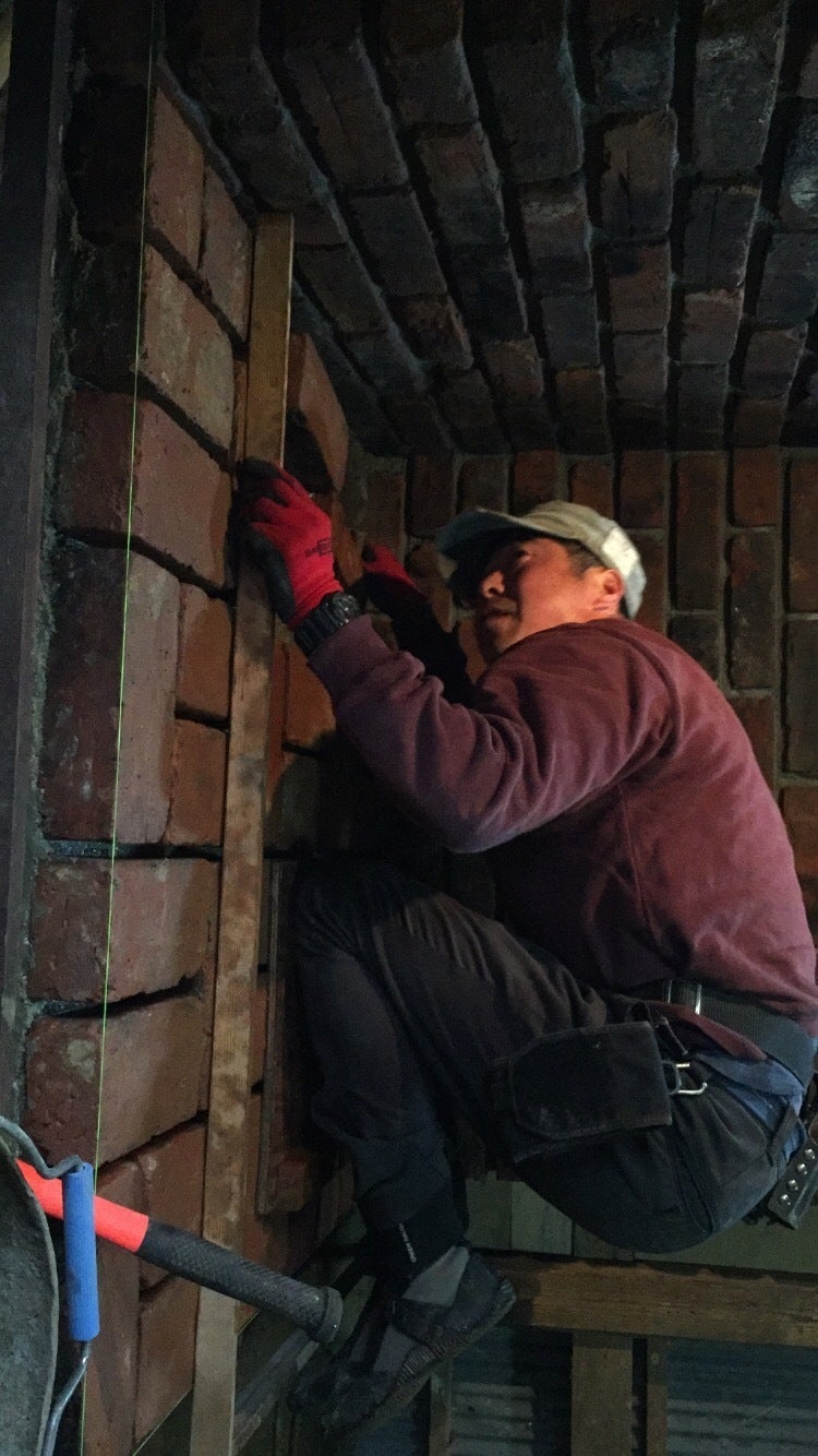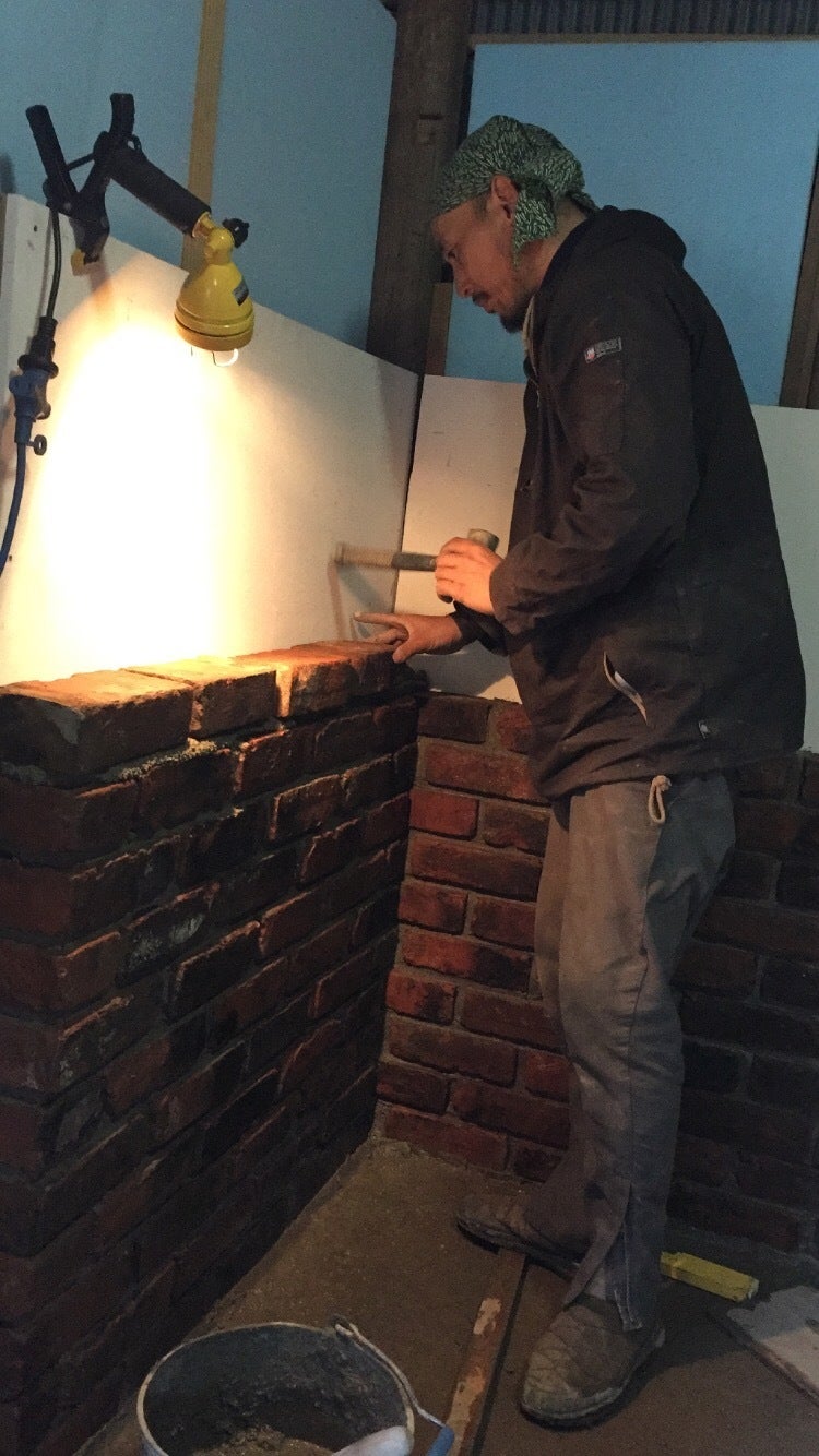 レンガ作業二日目と三日目は、大西親方が丁寧に水平を取りつつ丁寧に仕上げてくださいました!(ちょっと縦の画像になりますが)