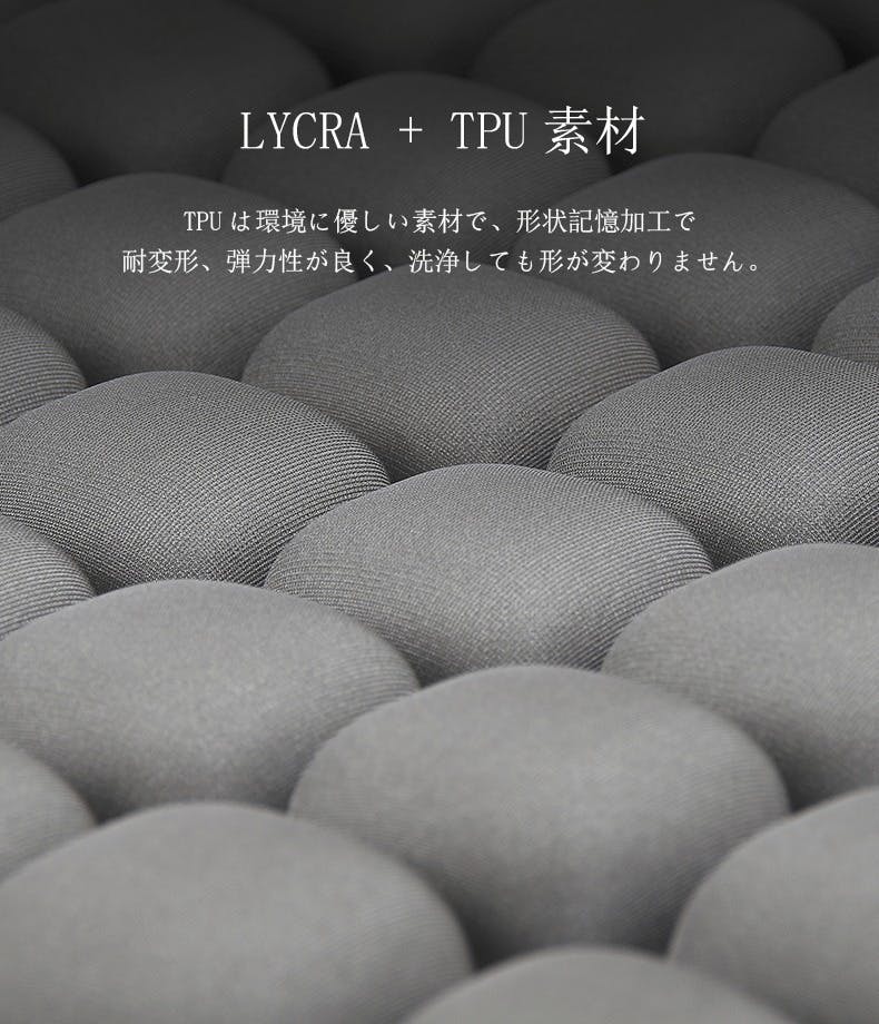 3Dエアセル間の隙間があるため、脚、臀部とシート間の熱伝達を減少させ