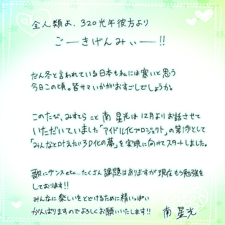そして12月12日、こんな私でも夢を叶えたいんだという意思表示をさせていただいたのです。