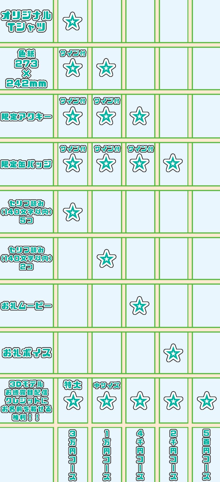 500円コース、2000円コース、4000円コース、1万円コース、3万円コースを用意しております。