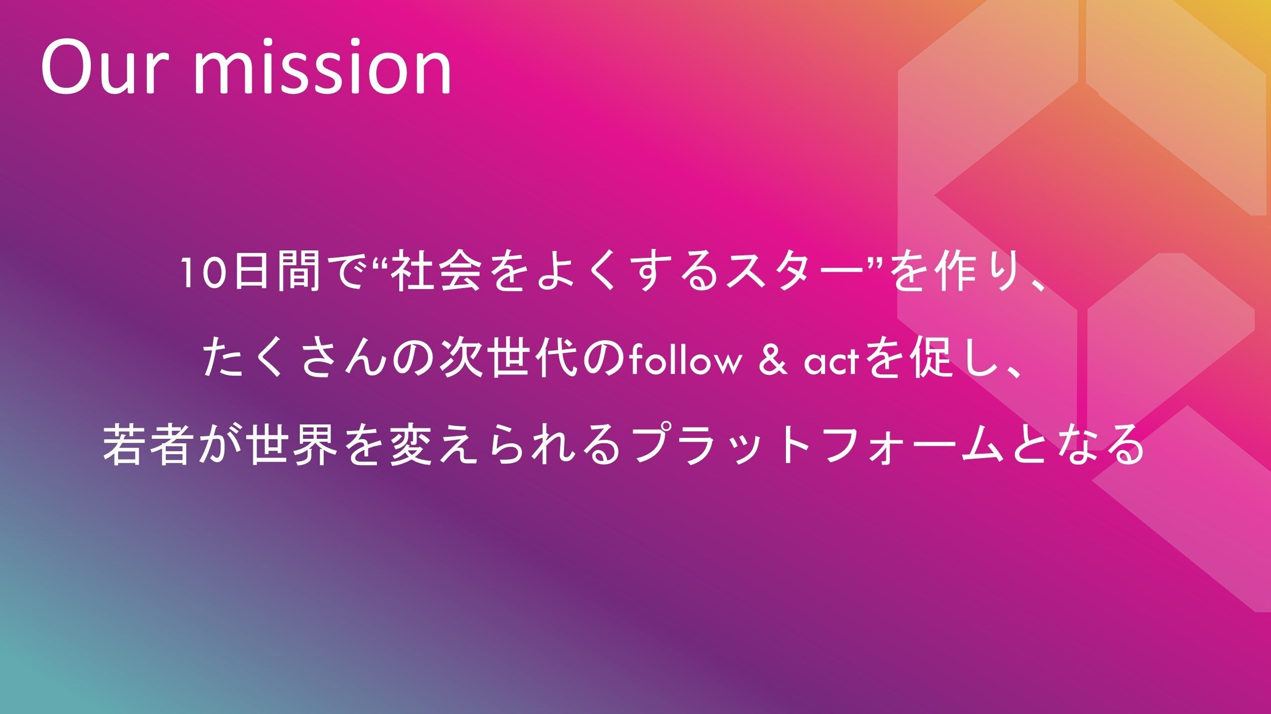 多くの次世代をより良い社会のために突き動かす力になることを目指しています。