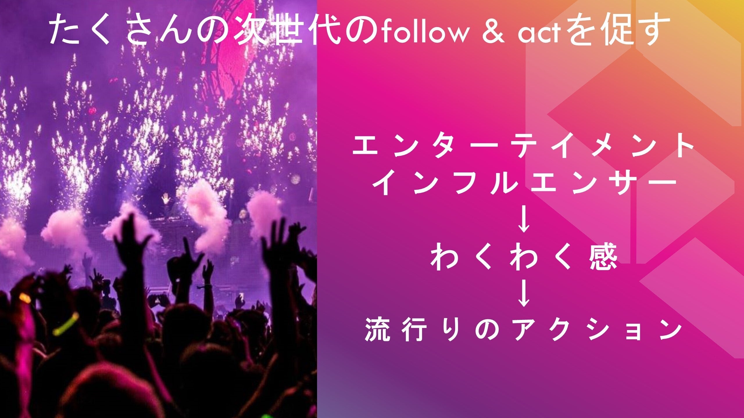 ”ソーシャル・カルチュラル”をとことんキャッチ―に発信することで”社会をよくする活動”とは無縁の多くの若者にリーチし、社会課題についてふれる最初の一歩、彼らの行動を変えるきっかけとなります。