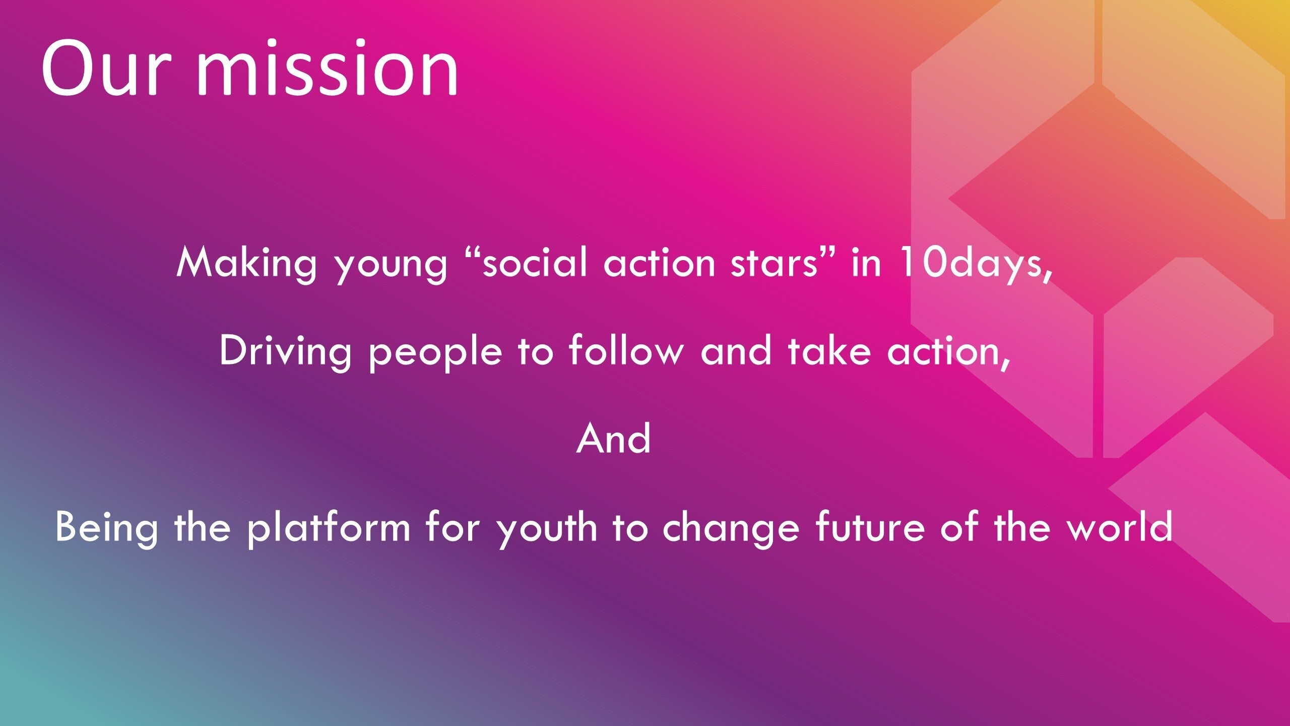 The first step to create innovative idea for social action and to create SQUAD(bonded friends) beyond border of nationality or social category to change the world in future.