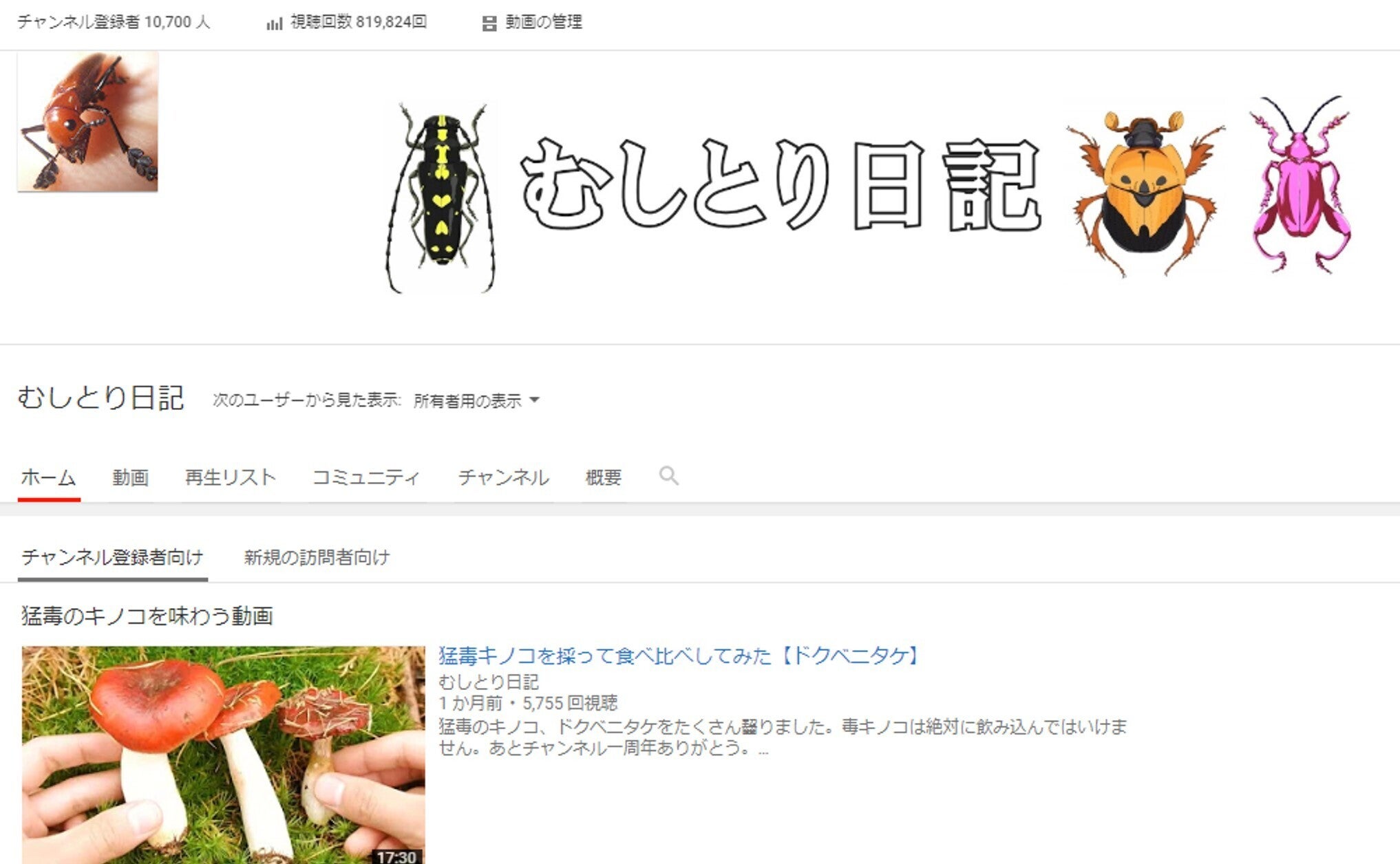 私は匿名で「むしとり日記」というYoutubeチャンネルを運営しており、