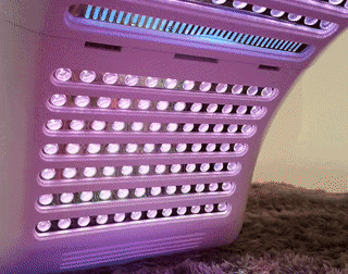 PURPLE波長はレッド(264個) + ブルー (264個)の2種類の波長が合成されたもので、2種類の波長効果が同時に発揮されます。2種類の波長が同時に照射されるため、528個のLEDが同時に点灯します。この波長もまた2種類の波長が同時に発揮されます。首、胸、背などにお薦めです。