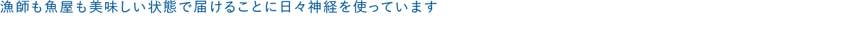 漁師は朝早くから出航しますが、私たちも朝4時半には起きて、魚の注文をまとめ、魚市場や漁師たちから買付けをし、その日に売る魚を買い集めます。昼までに仙台の飲食店向けに梱包・配達し、東京など遠方は夕方の集荷に間に合わせます。