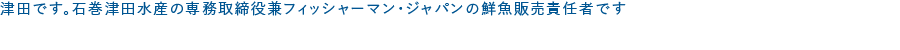 はじめまして! 津田祐樹です。私は宮城県石巻市で鮮魚の仲卸として、魚市場や漁師たちから毎日魚の買い付けを行い、仙台や首都圏の飲食店に卸しています。
