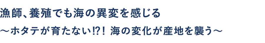 ホタテは2−3割しか育たないことが続き、産地である宮城、岩手、青森、北海道のすべての産地で育たず死んでしまう割合が増えています。海水温の変化や栄養素の不足、病気など、原因は今も不明です。
