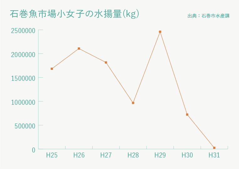 毎日の仕事の中で、どんどん魚は小さくなり、あるいは獲れない現状を見ることが多くなってきました。報道でご存知の方もいらっしゃるでしょうが、イカやサケ、サンマの記録的な不漁をはじめ、昨春は春の訪れを告げる小女子(コウナゴ)も2年前を100とすると1ぐらいの不漁でした。