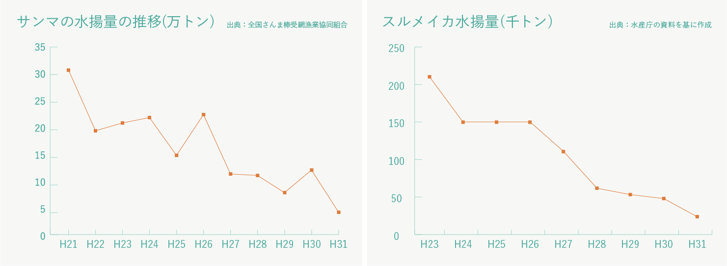 小女子、ホッケ、シイラの他にも、サンマやスルメイカも水揚量が大きく変化しています。