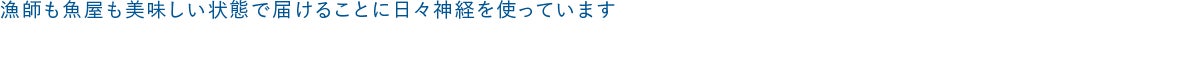 漁師は朝早くから出航しますが、私たちも朝4時半には起きて、魚の注文をまとめ、魚市場や漁師たちから買付けをし、その日に売る魚を買い集めます。昼までに仙台の飲食店向けに梱包・配達し、東京など遠方は夕方の集荷に間に合わせます。