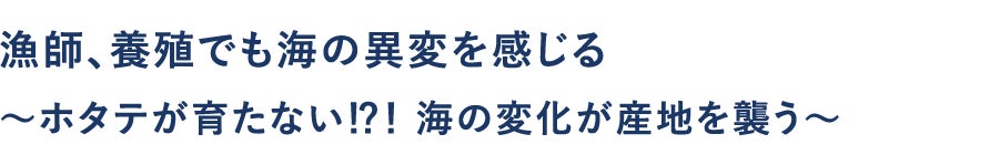ホタテは2−3割しか育たないことが続き、産地である宮城、岩手、青森、北海道のすべての産地で育たず死んでしまう割合が増えています。海水温の変化や栄養素の不足、病気など、原因は今も不明です。