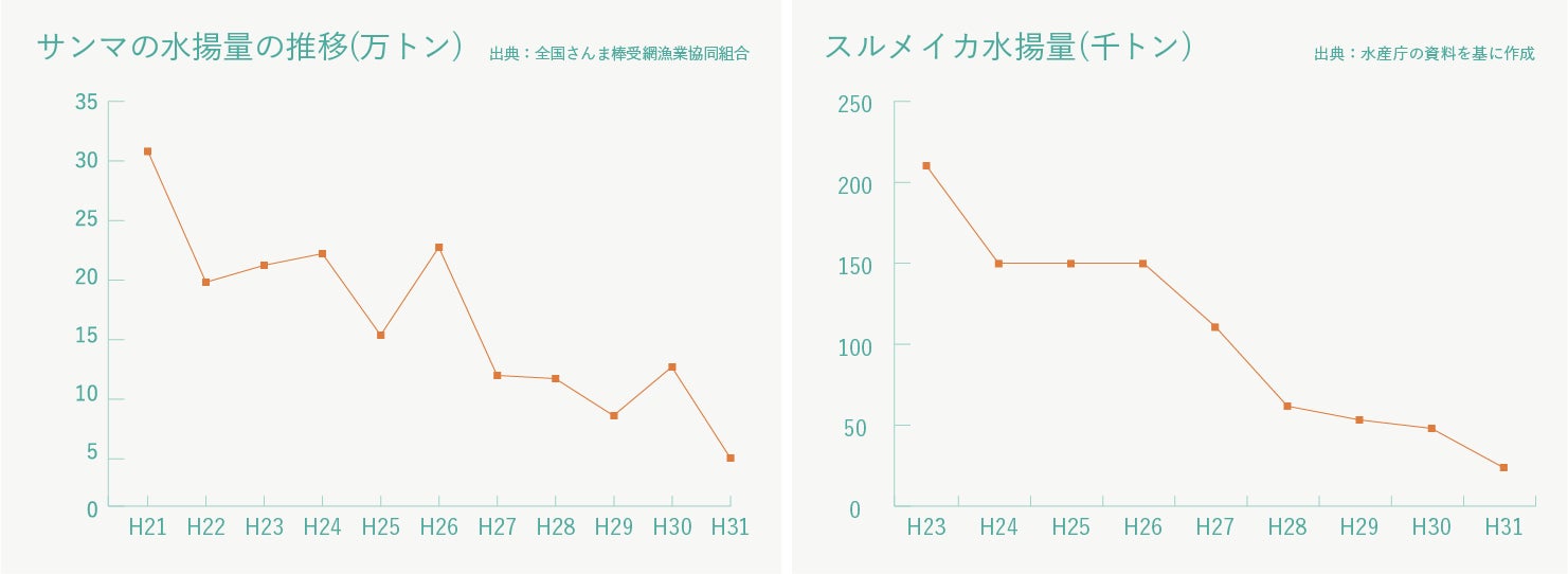小女子、ホッケ、シイラの他にも、サンマやスルメイカも水揚量が大きく変化しています。