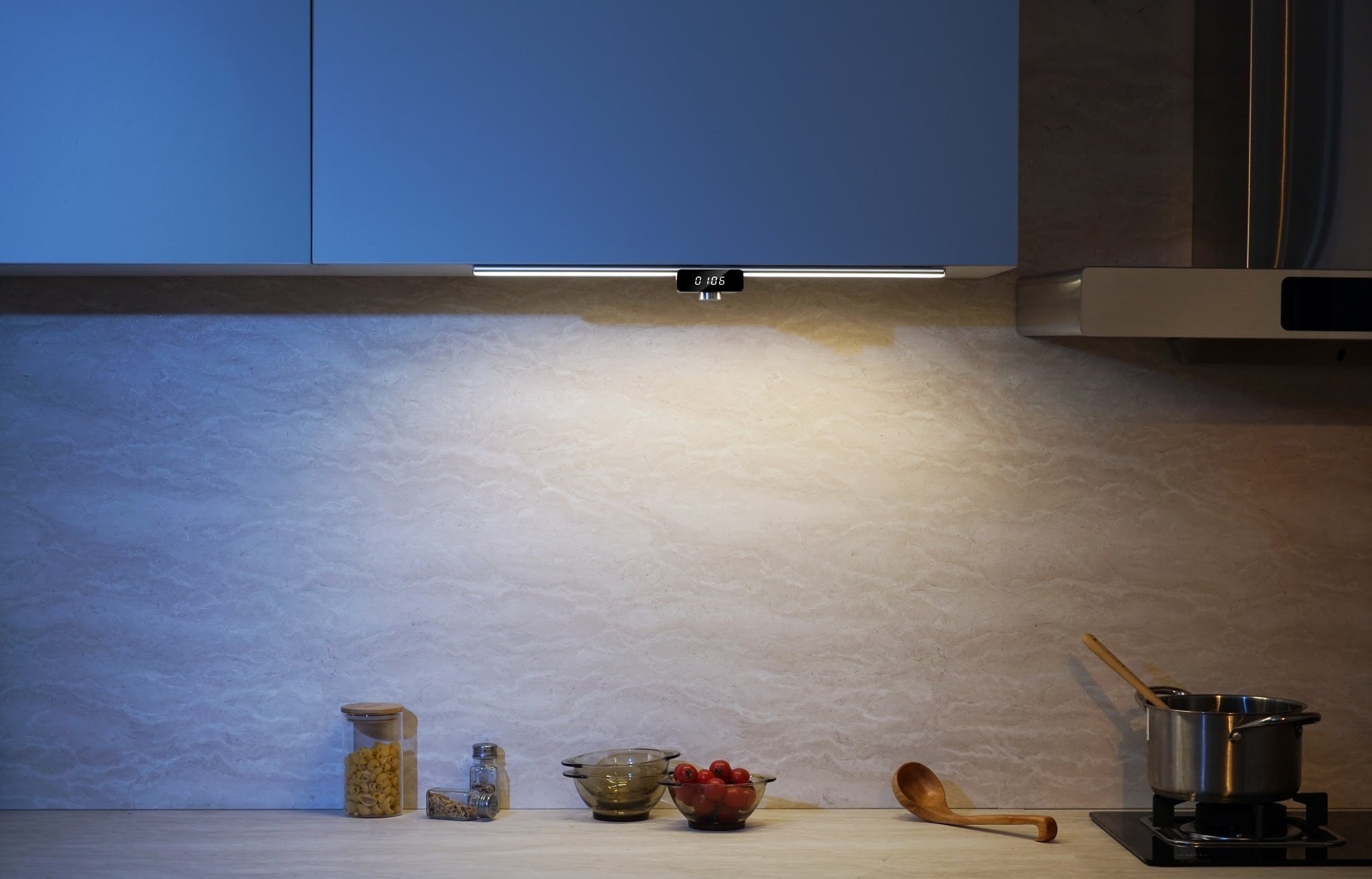 キッチンで料理をしている最中など、手元の作業を中断して他の作業をすることが難しいときってありますよね。KUCHE SOL ならセンサーが作動してくれるので、ライトの下に手をかざすだけで操作が可能です。