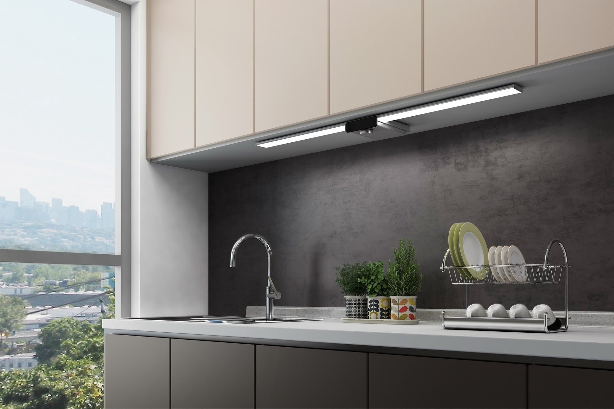 KUCHE SOL(クチェ・ソル) はこれまでのキッチンライトの概念を覆してくれる画期的なスマートライトです。ON/OFFや光量の調節も簡単で、自宅で手軽にデザイン性の高い照明を導入することができます。DIYにも最適です。