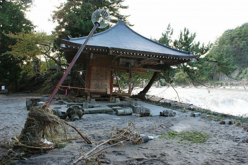 阿武隈川が氾濫したことによって、歴史・文化・建物が次々に流れていってしまいました。地域住民同士が手を取り合って、被災住宅や滝見不動堂の復旧活動を日々行っております。