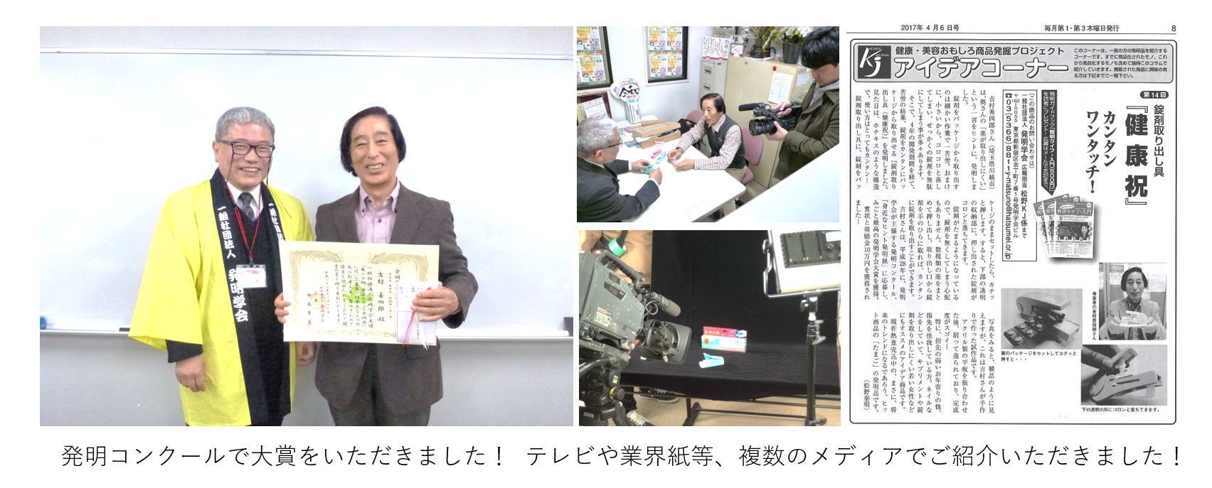 錠剤出取は発明家「吉村さん」の発明を、一般社団法人発明学会ご紹介のもと弊社にて採用、製品化した器具になります。