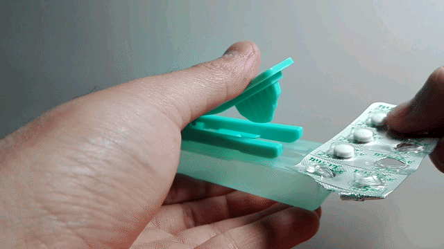 すると錠剤がパッケージから押し出されて、下の錠剤収納部分に落ちます。