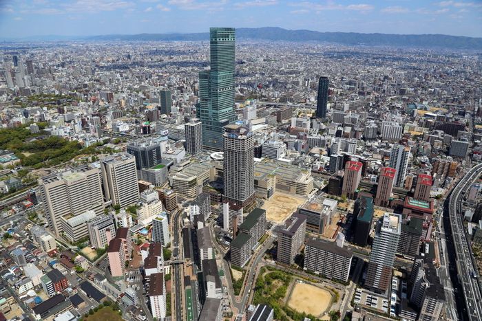 ▲大阪市阿倍野区付近の主なポイント(あべのハルカス・キューズモール・天王寺動物園・てんしば・通天閣・ちんちん電車など)