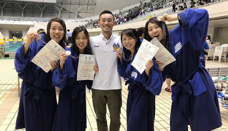 初めまして。大阪体育大学女子水上競技部です。私たちは日々練習に取り組み、ライバルと切磋琢磨し活動しています。このチームの自慢できるところは、女子部では全国トップレベルの自己ベスト更新率を誇ることです。ただし、団体戦である関西インカレでは2019年度総合4位。ここ3年連続で4位が続いてしまいました。なかなかトップ3に組み込めない現状が続いています。それを打破するためにも、オリンピックメダリストレベルが生まれる環境に身を置き、世界のライバルを作り、将来を見据えたチーム、個人のレベルアップが必要と感じています。指導者のコーチング脳のアップデート、アウトプットは不可欠です。