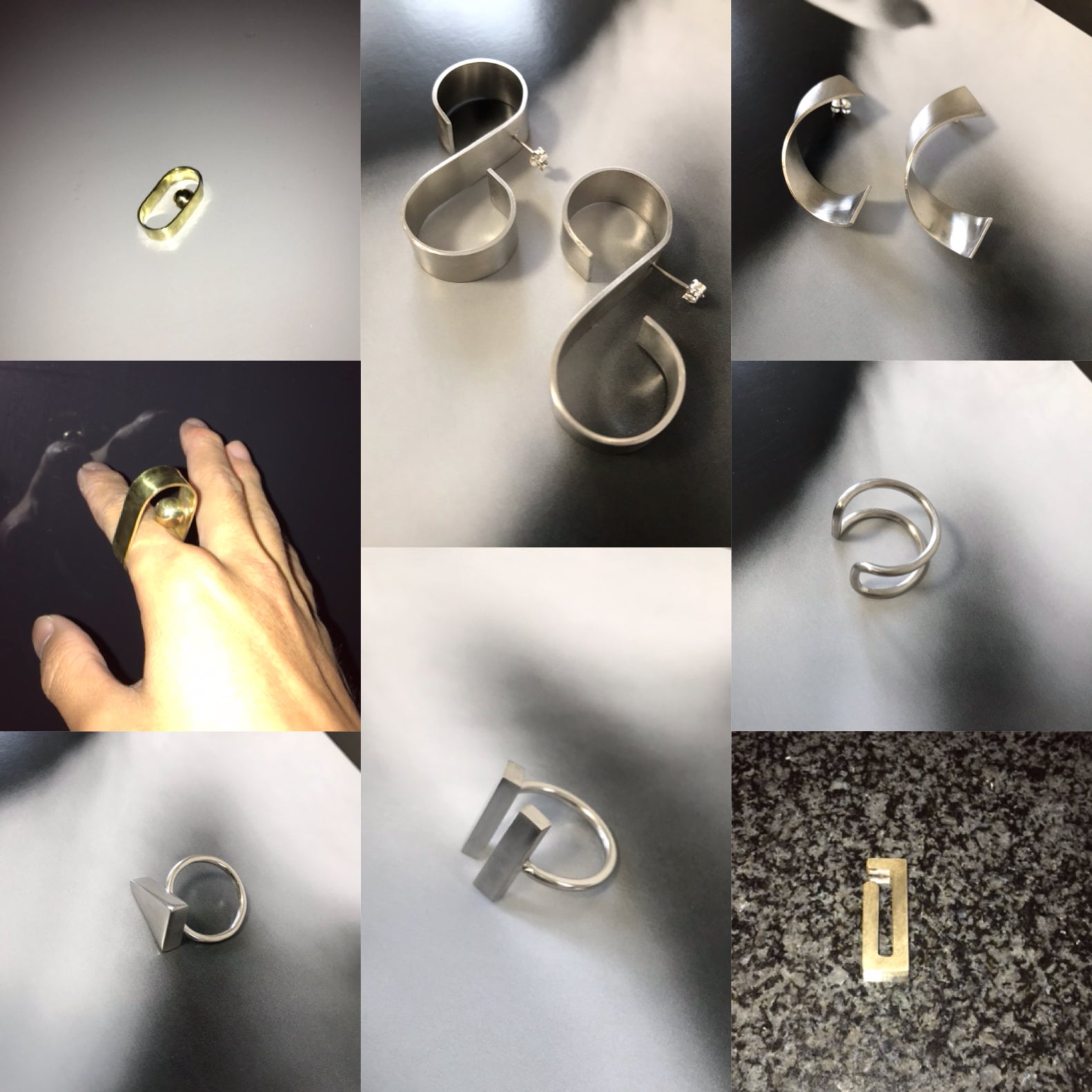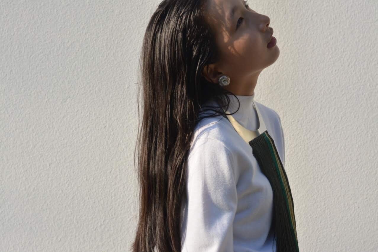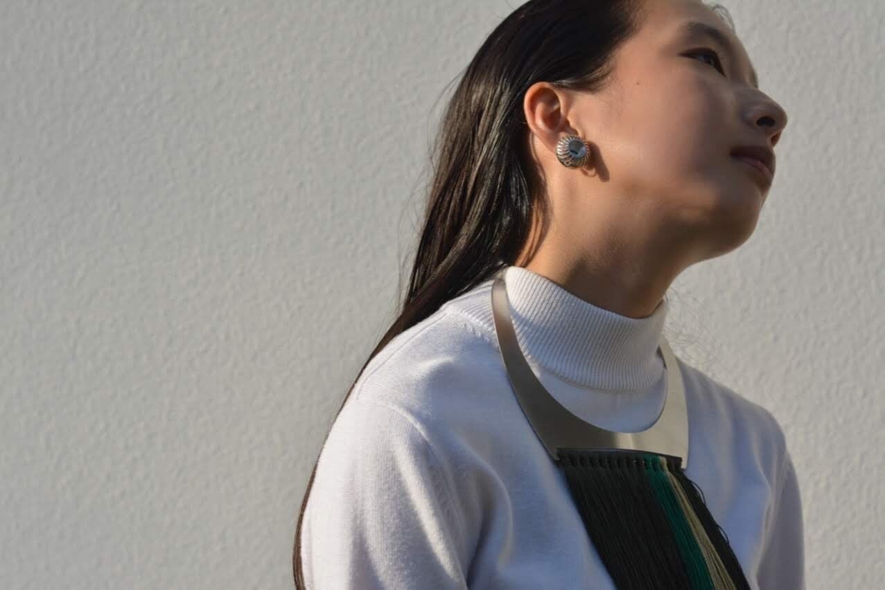 私は、「飾る」事「飾られる」事について、研究し、制作しています。アクセサリーの新たな形を、付け方などを提案し、シンプルな形に一工夫して、独自性やクール、ユーモアのある作品を制作しています。
