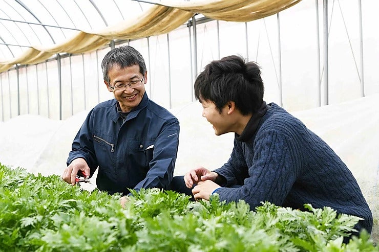 吉本興業のまつトミさんが山本農園のサラダ春菊のおいしさを紹介してくれました。緊張の私をお笑いで和ませてくれました。何とか無事に最後までできました。心優しいお二人でとてもよかったです。放送日は3月31日(火)東日本放送 午前9:55~ 突撃ナマイキTV番組HP: http://www.khb-tv.co.jp/s009/index.html