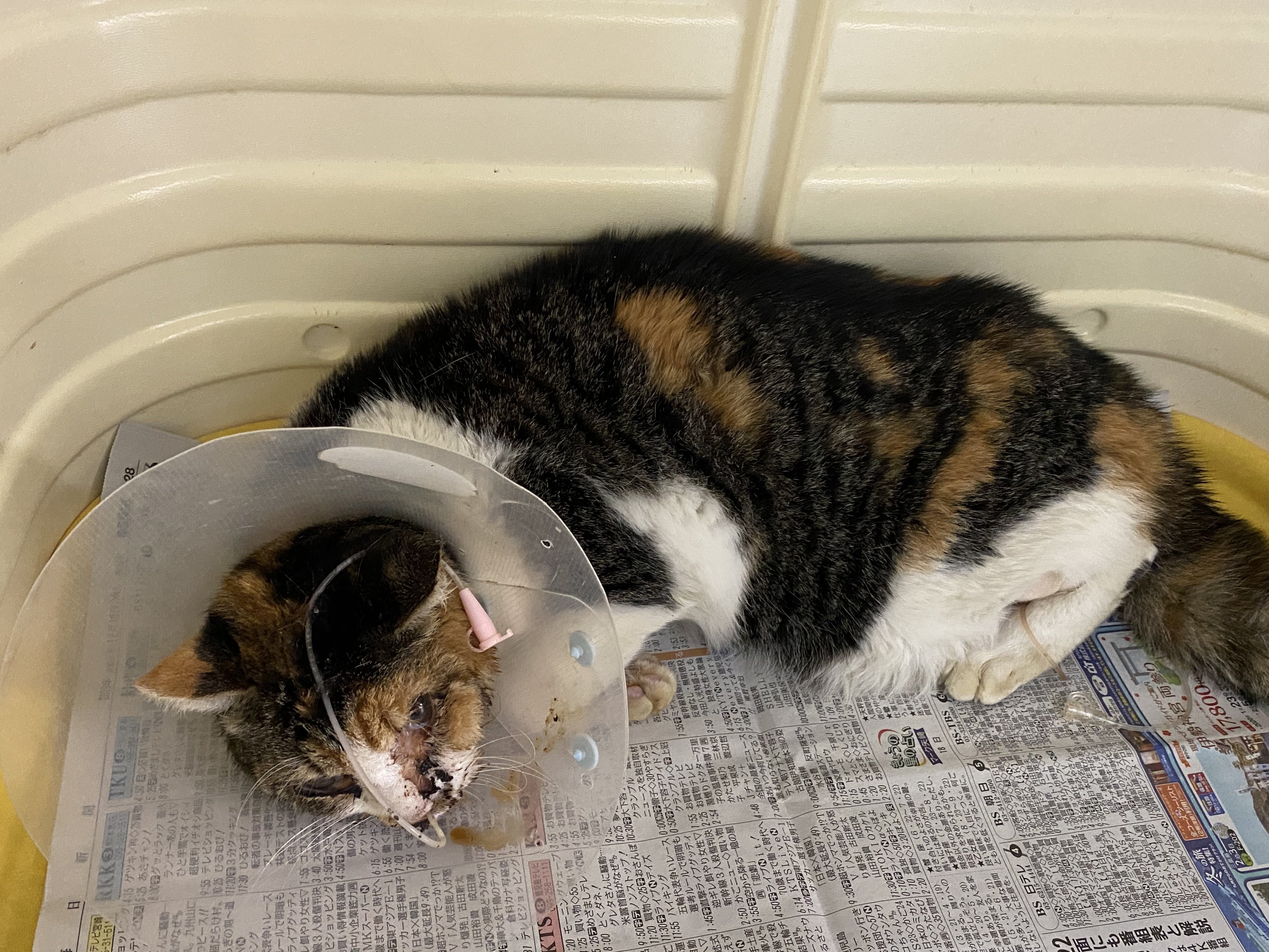 まだまだ人を警戒している様子、先生や看護師さん達も手を焼いているようでした。