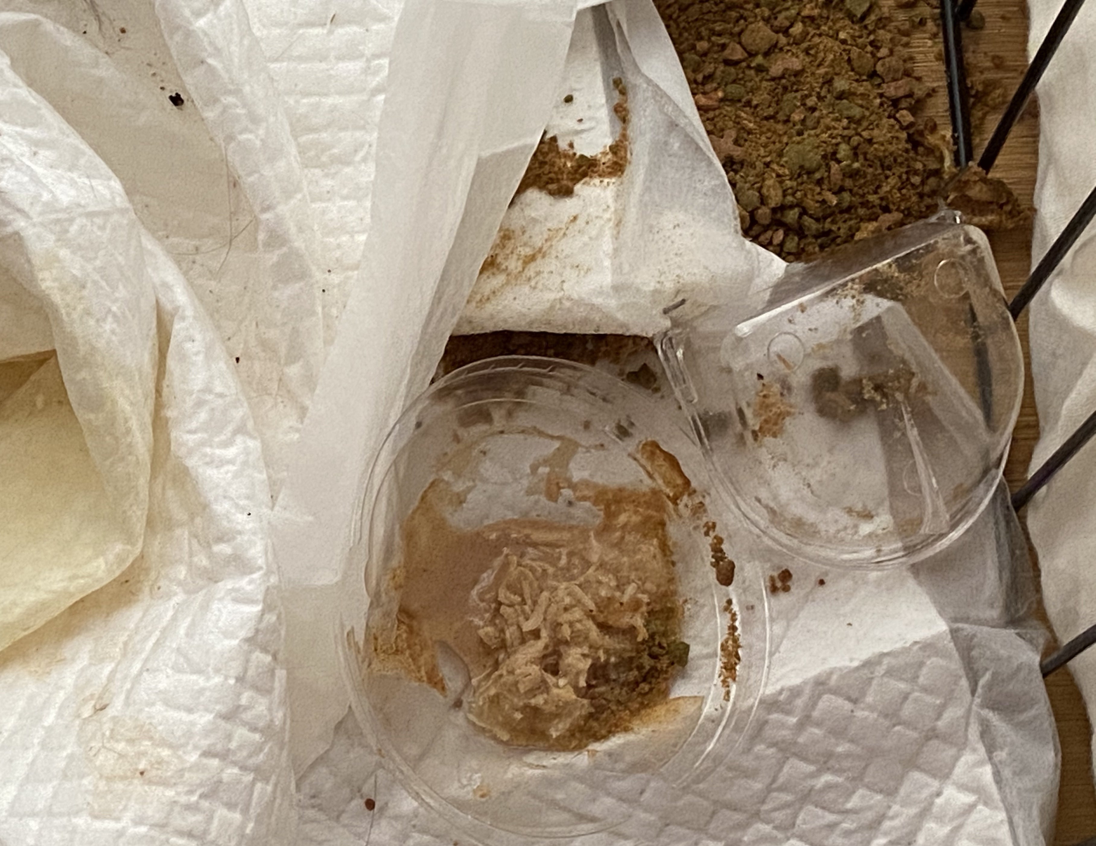 1回目食べさせたあと、ケージの中に1本分のとろリッチを出してあげましたが、量が少なく、食べたのか体で拭ってしまったのか分からず(>_<;)