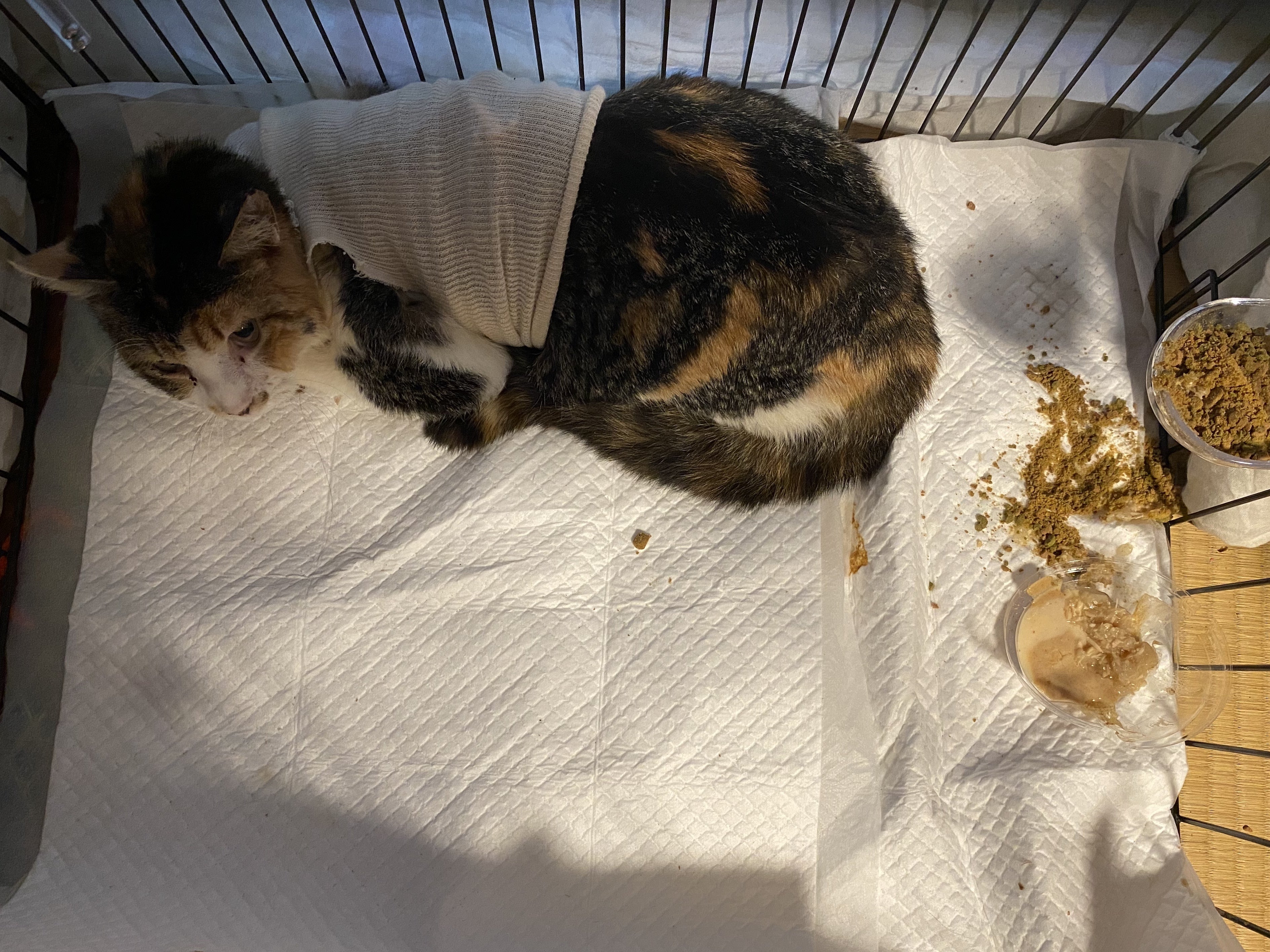 先生に報告すると、「せっかくだからチューブも抜いて里親さんへお渡ししよう!自分で食べるか観察して(^^)」となりました。