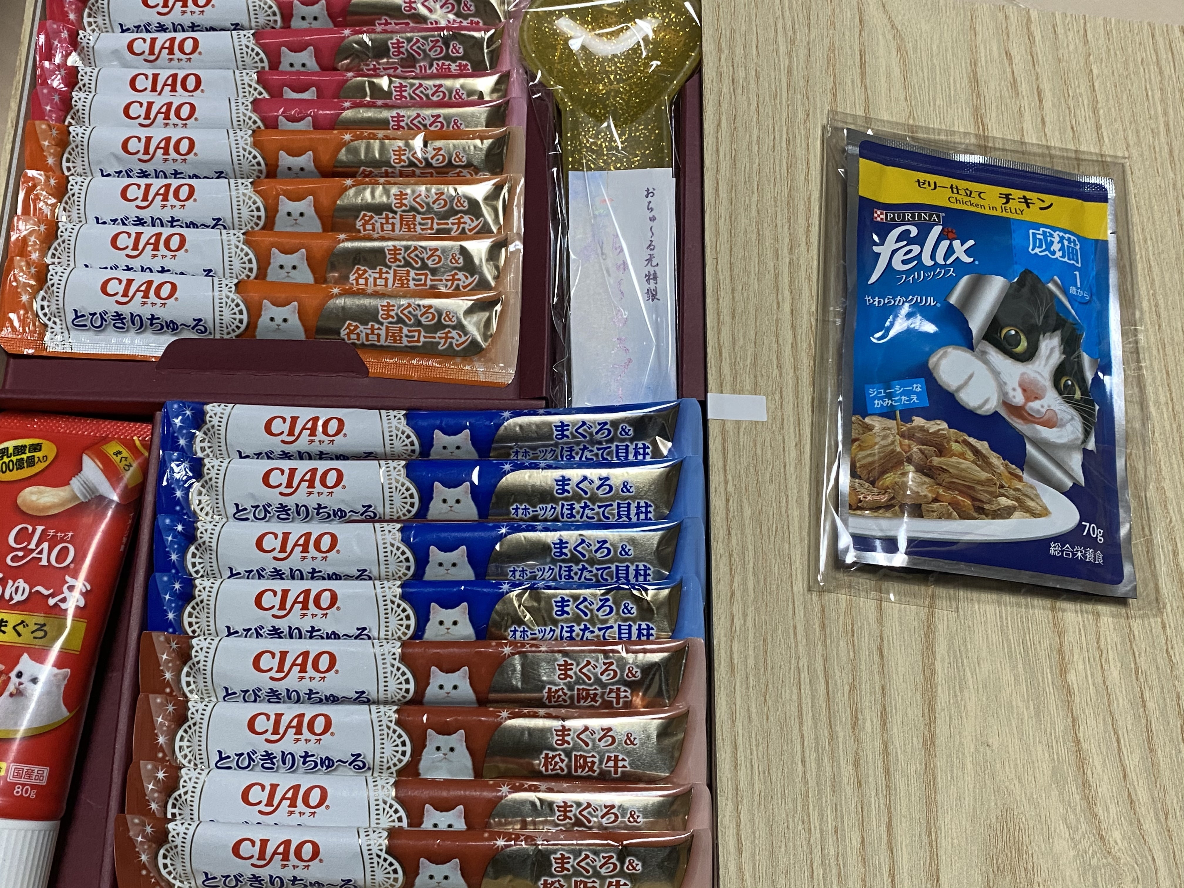 そして、今月、ご支援者のIさんより、ちゅーるセットをいただきました!