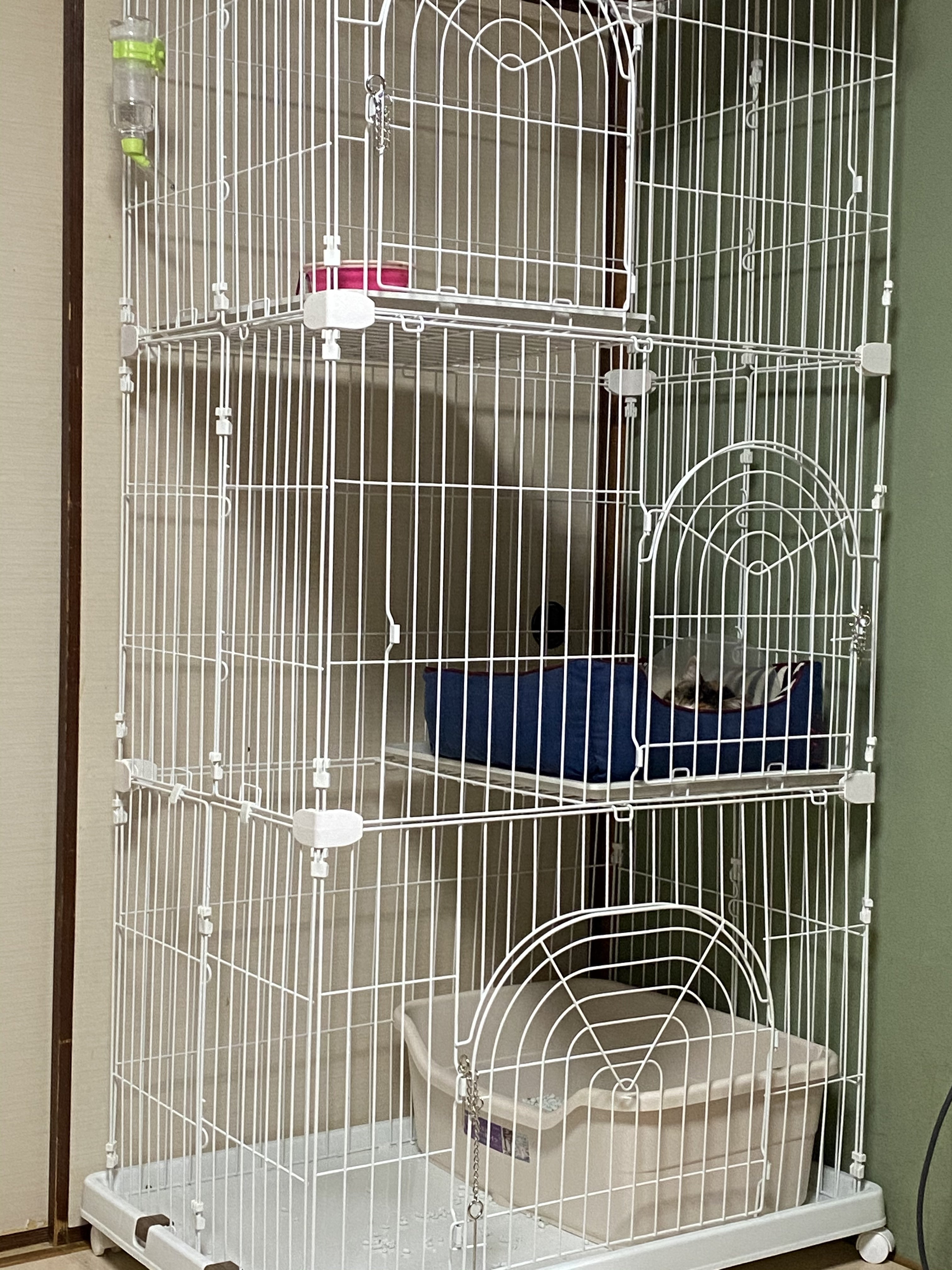 狭いケージに入ったままというストレスかなと思っていたので、三段ケージはありがたいタイミングでした!!