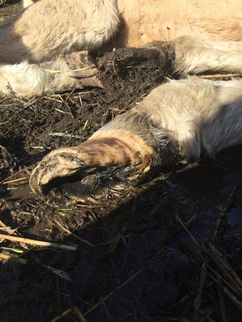 何年もお世話をしてもらえていなかったようで、蹄は伸び、ハイヒールを履いた状態とのこと