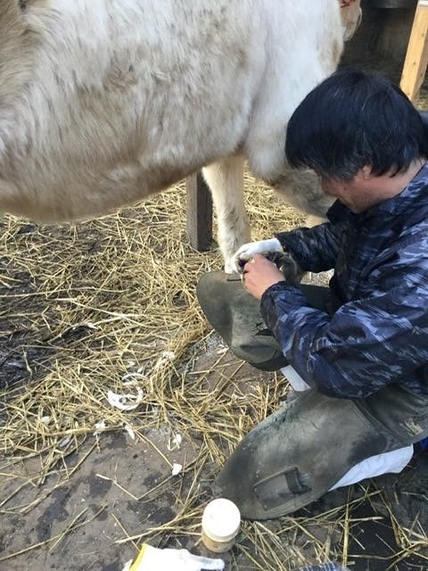 今のところ毎日蹄の裏の汚れをとり、薬を塗り、マッサージをしています。