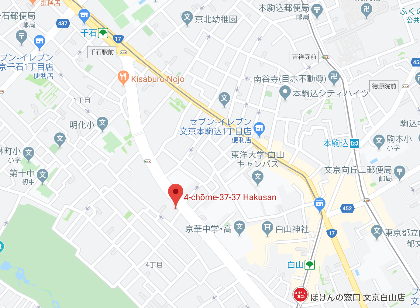 112-0001 東京都文京区白山4-37-37 第五文成パレス1階