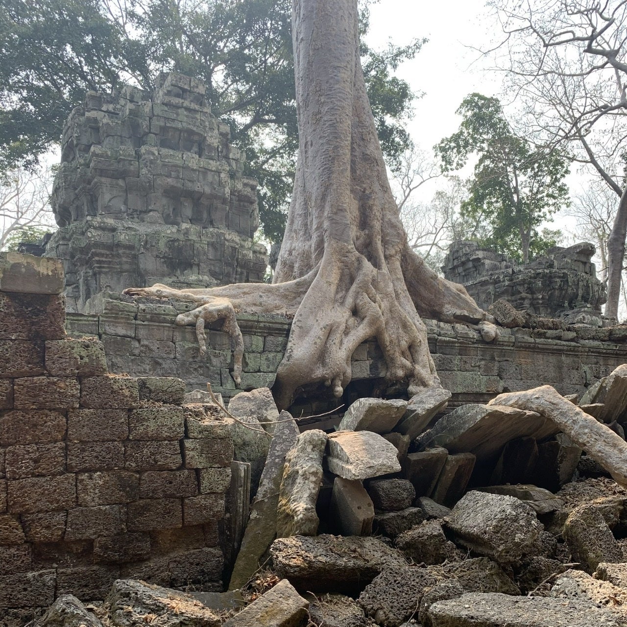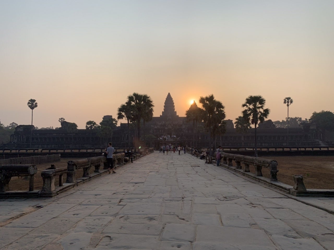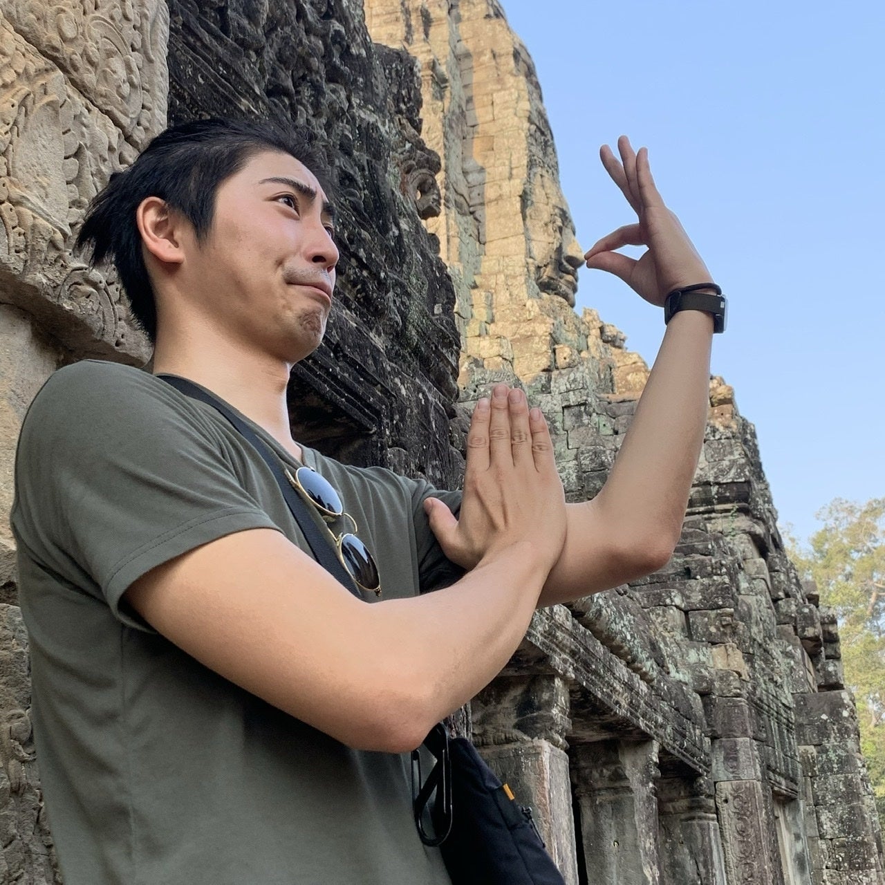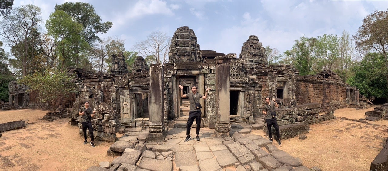 アンコールトムに行って、学生ボランティアが一緒に回ってくれて写真撮ってくれたり、