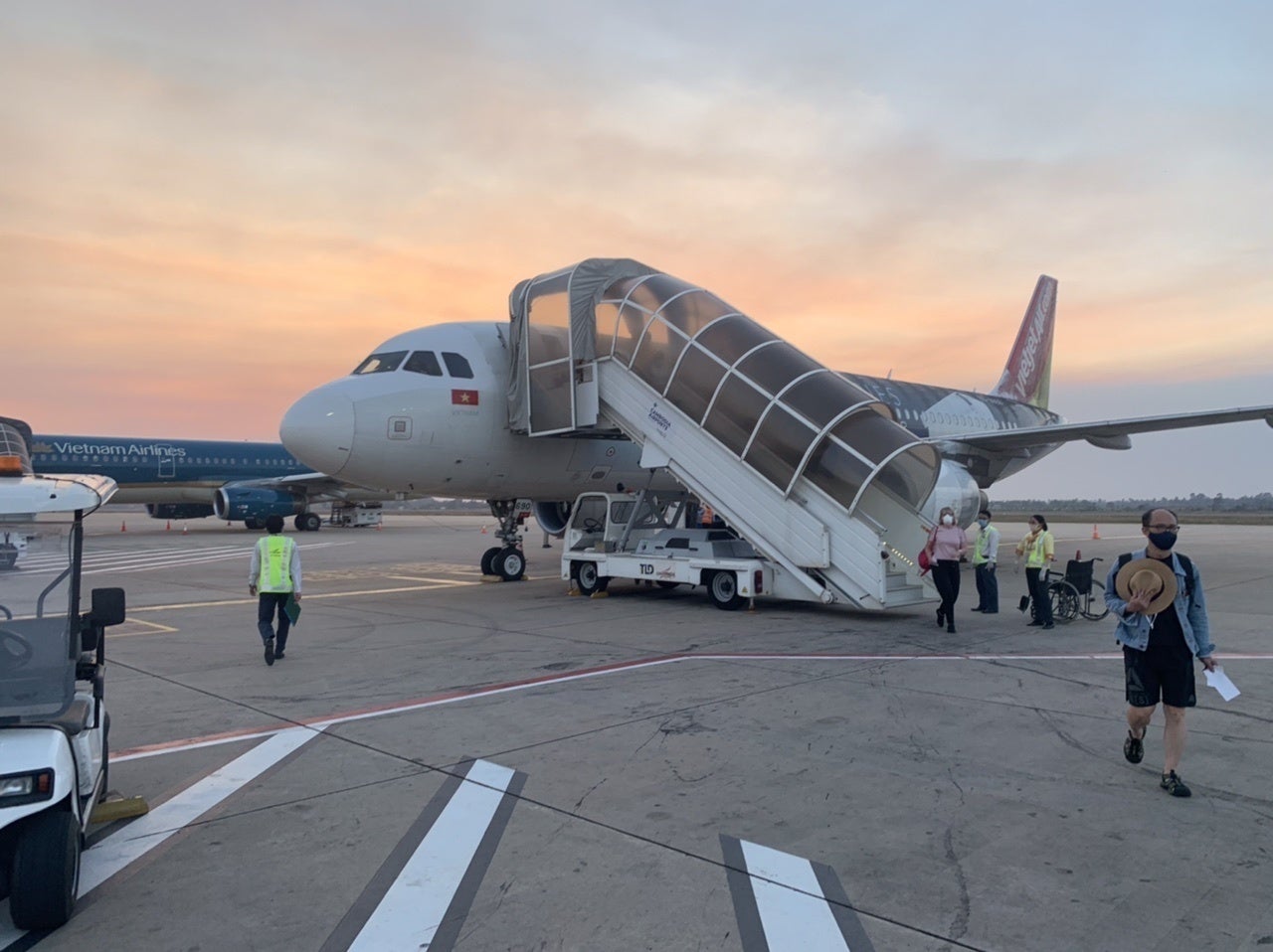 成田空港を9時半に出発し、ベトナム(ハノイ)を経由して、現地時間18時にシェムリアップにつきました。