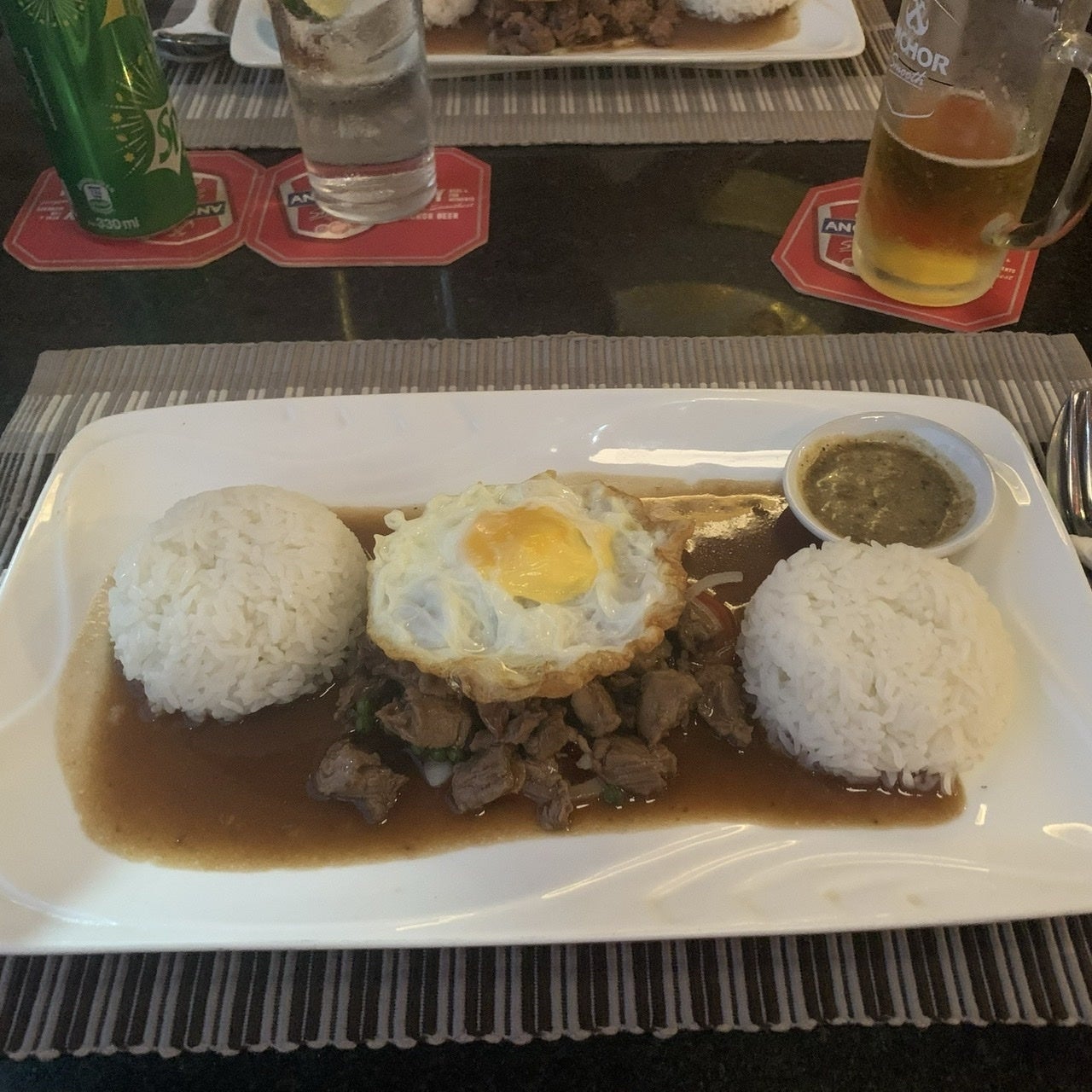 昨日の晩ご飯はロックラックという牛肉の煮込みみたいのを食べました。