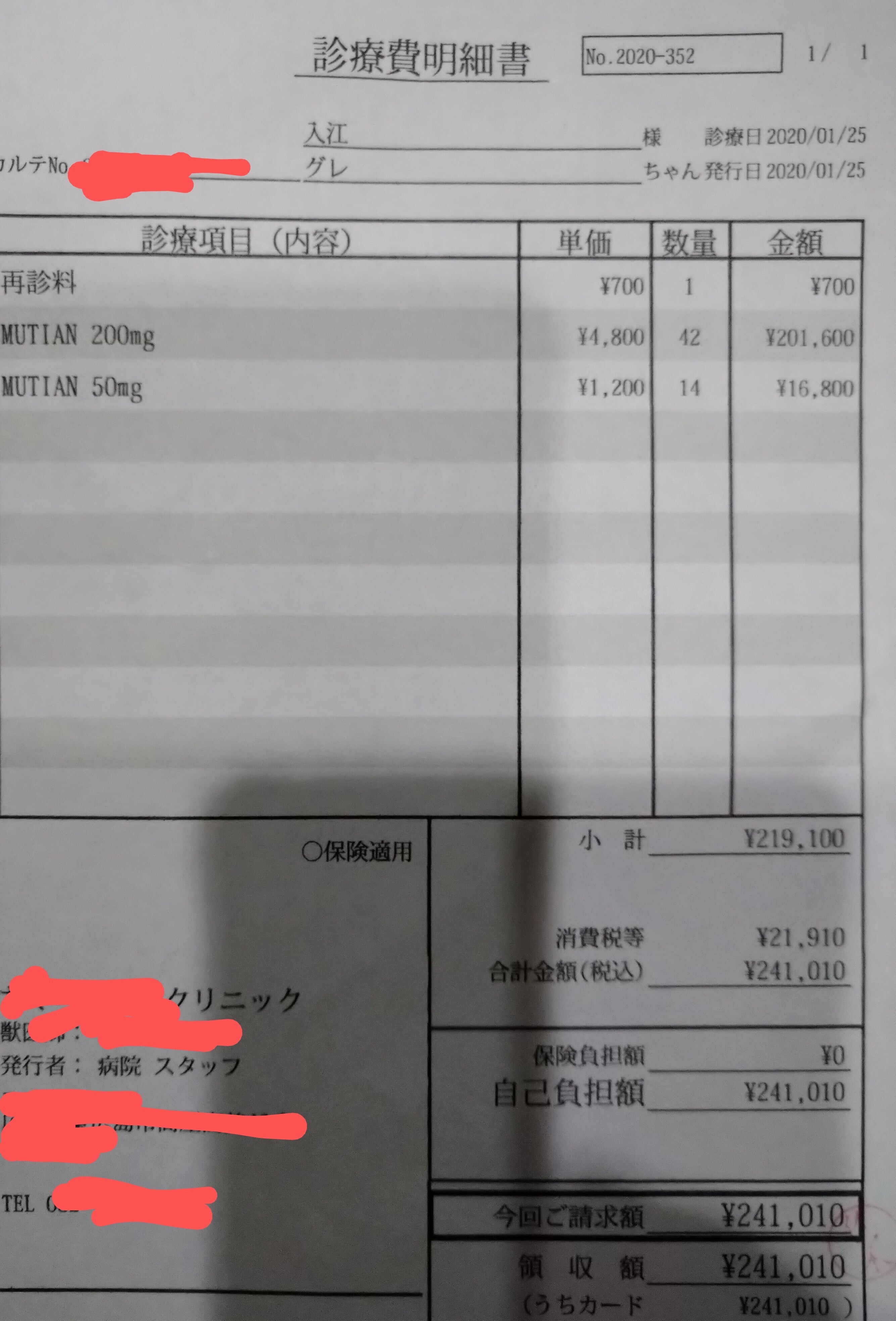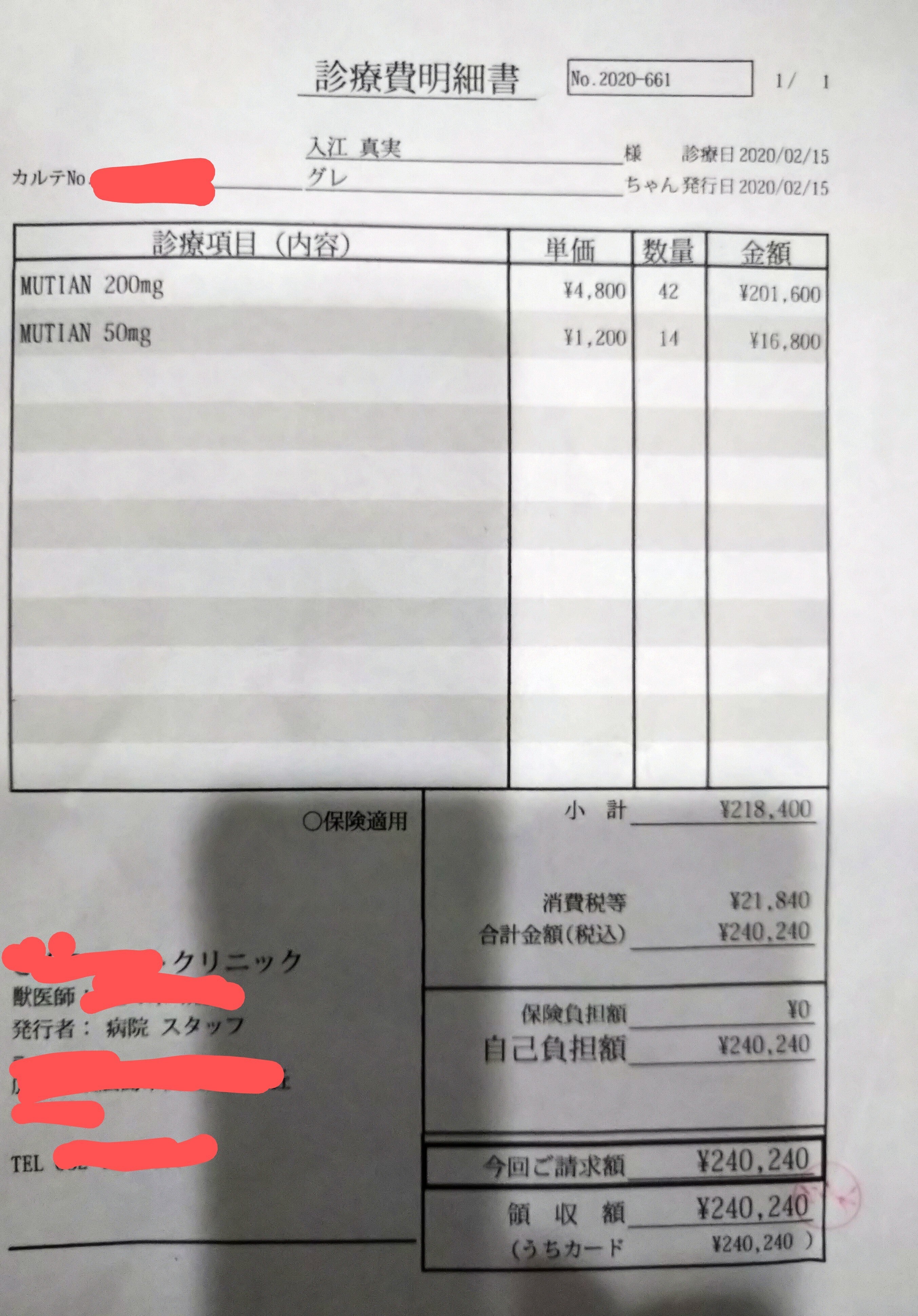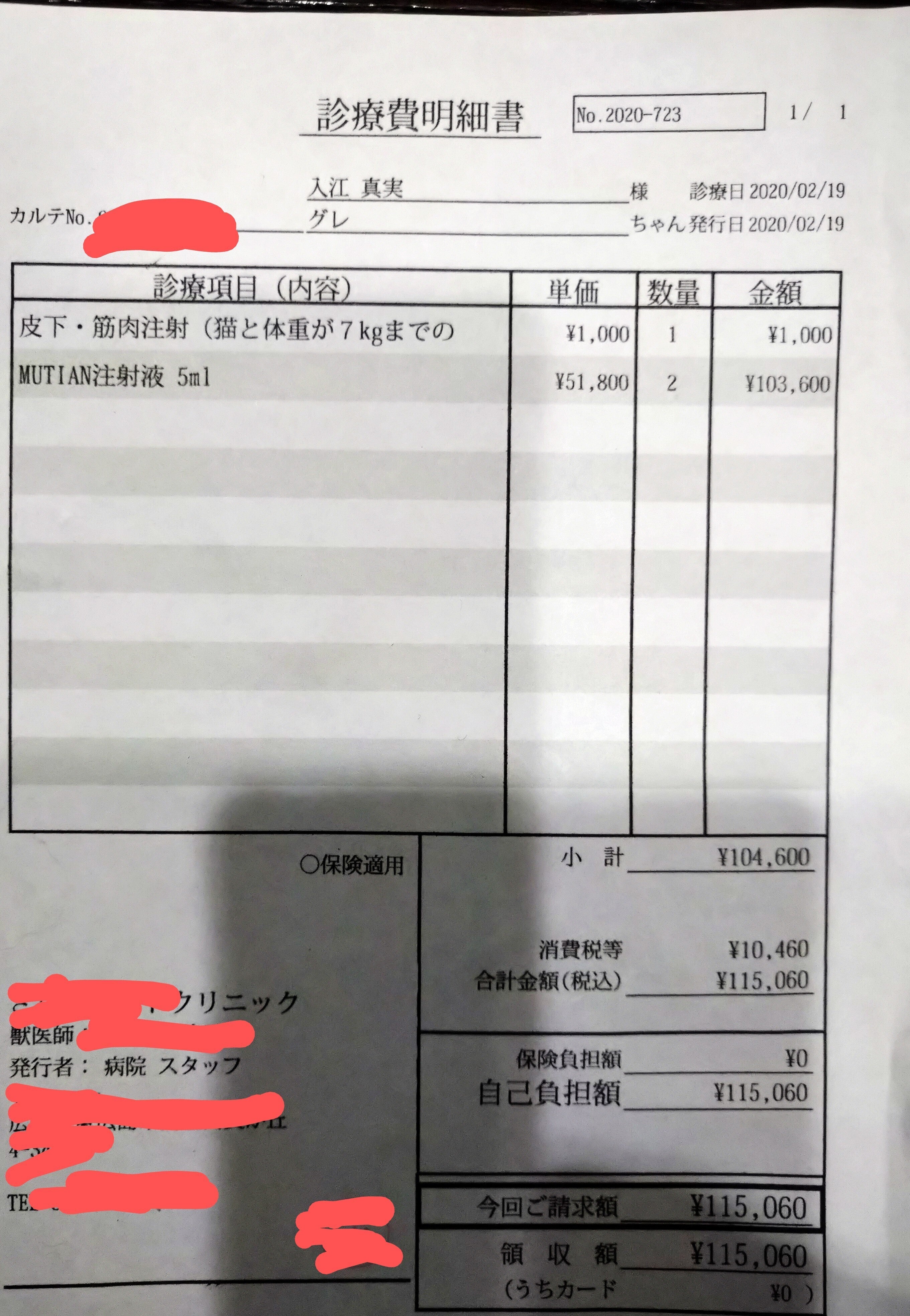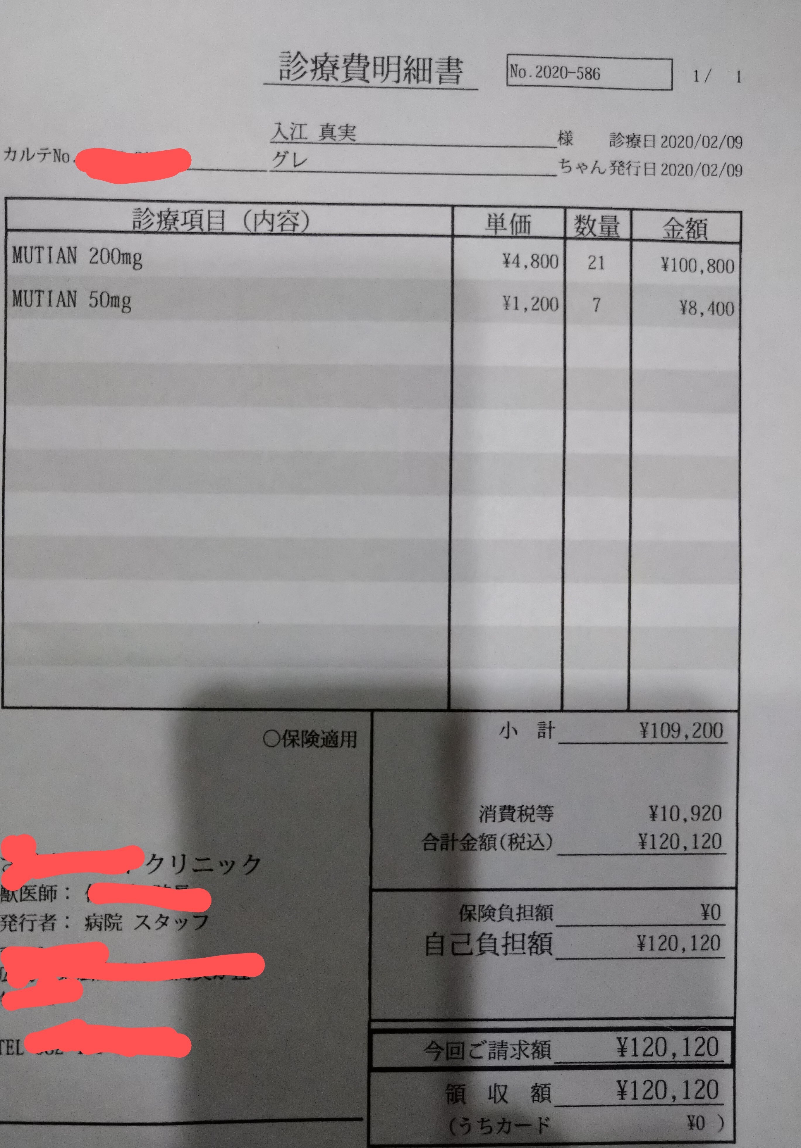 これには血液検査代、高速代は含んでおりませんので全部合わせるともっとかかります。