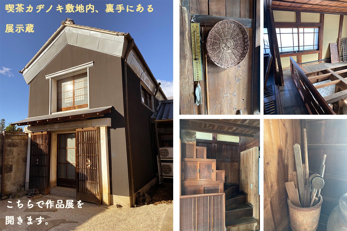 ↓私の作品を見て頂く機会を作るため、喫茶カヂノキ敷地内にある"展示蔵"で作品展を開催します。