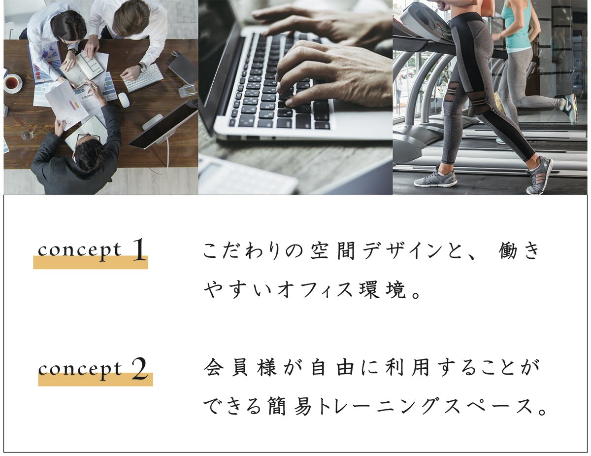 コンセプトはこだわりぬいた空間デザインと、会員様が集中して働きやすいオフィス環境の提供。それに加えて会員様同士が気軽に繋がれたり、情報交換をすることができるオフィスです。