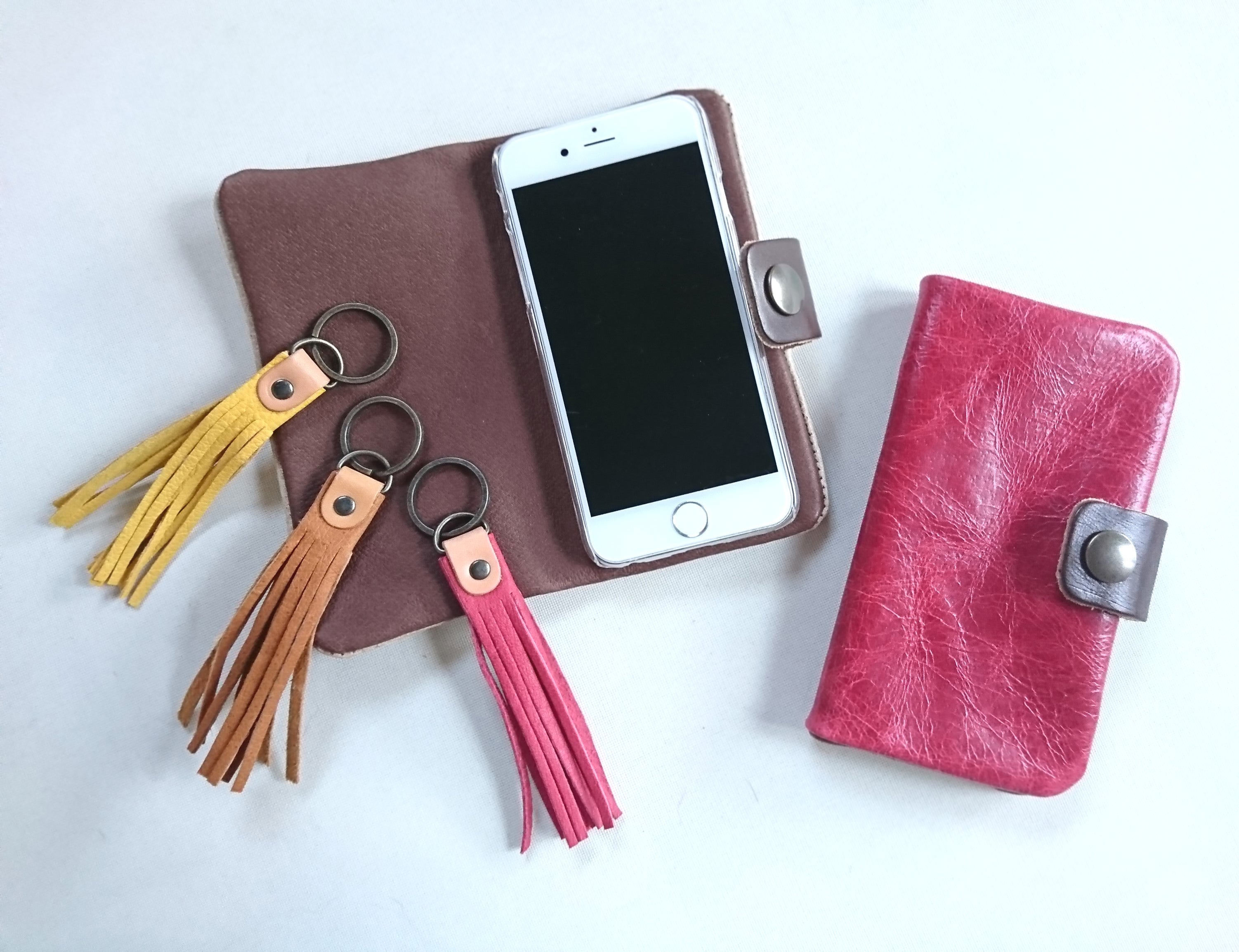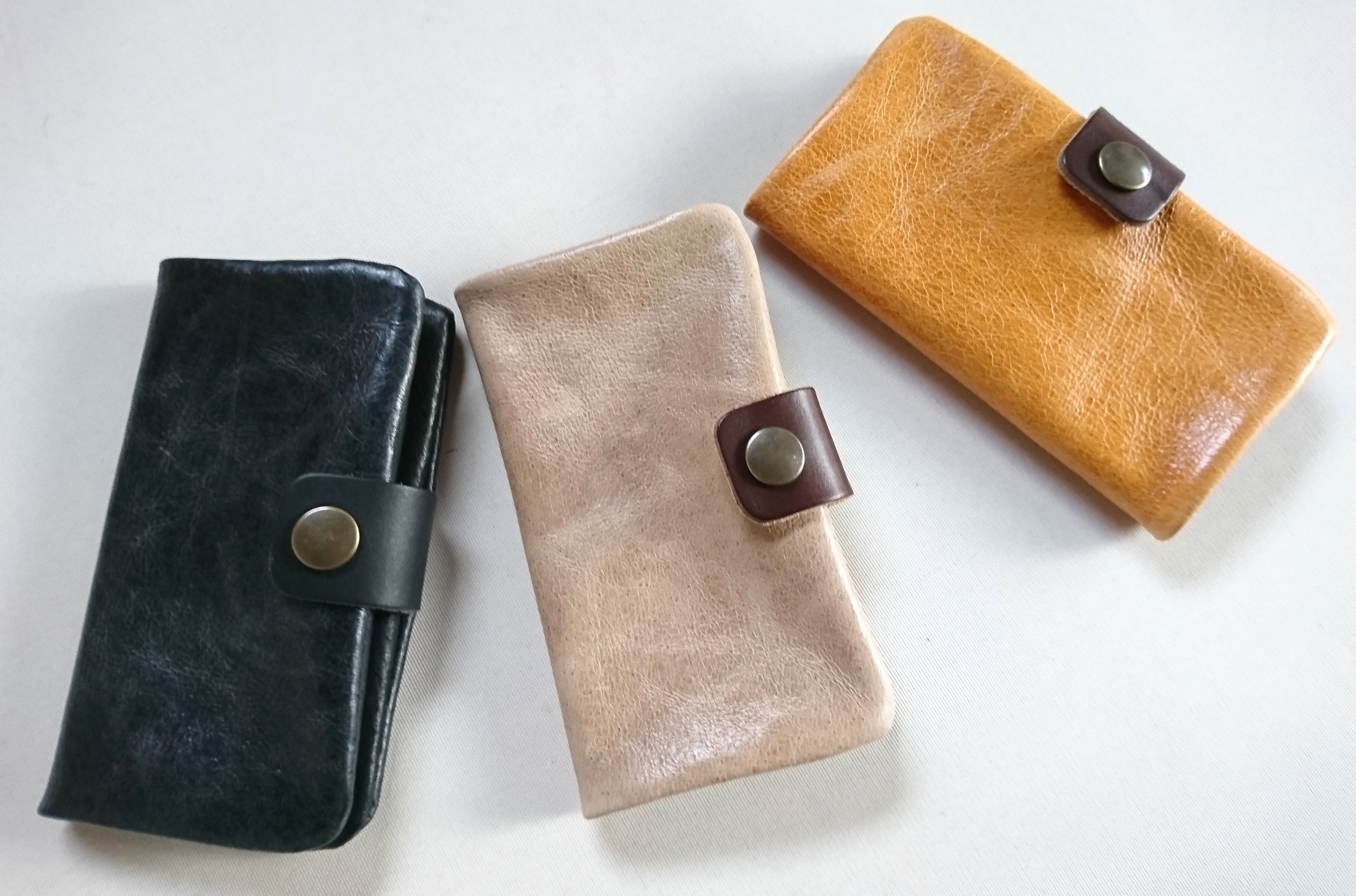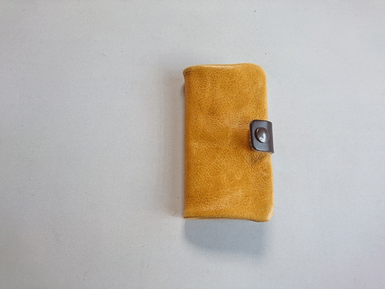 お腹に近い部分は非常に柔らかく、お財布には向いていませんが、他の小物には向いています。大量に余ってしまった革を使って、スマホケースをお作りいたします。