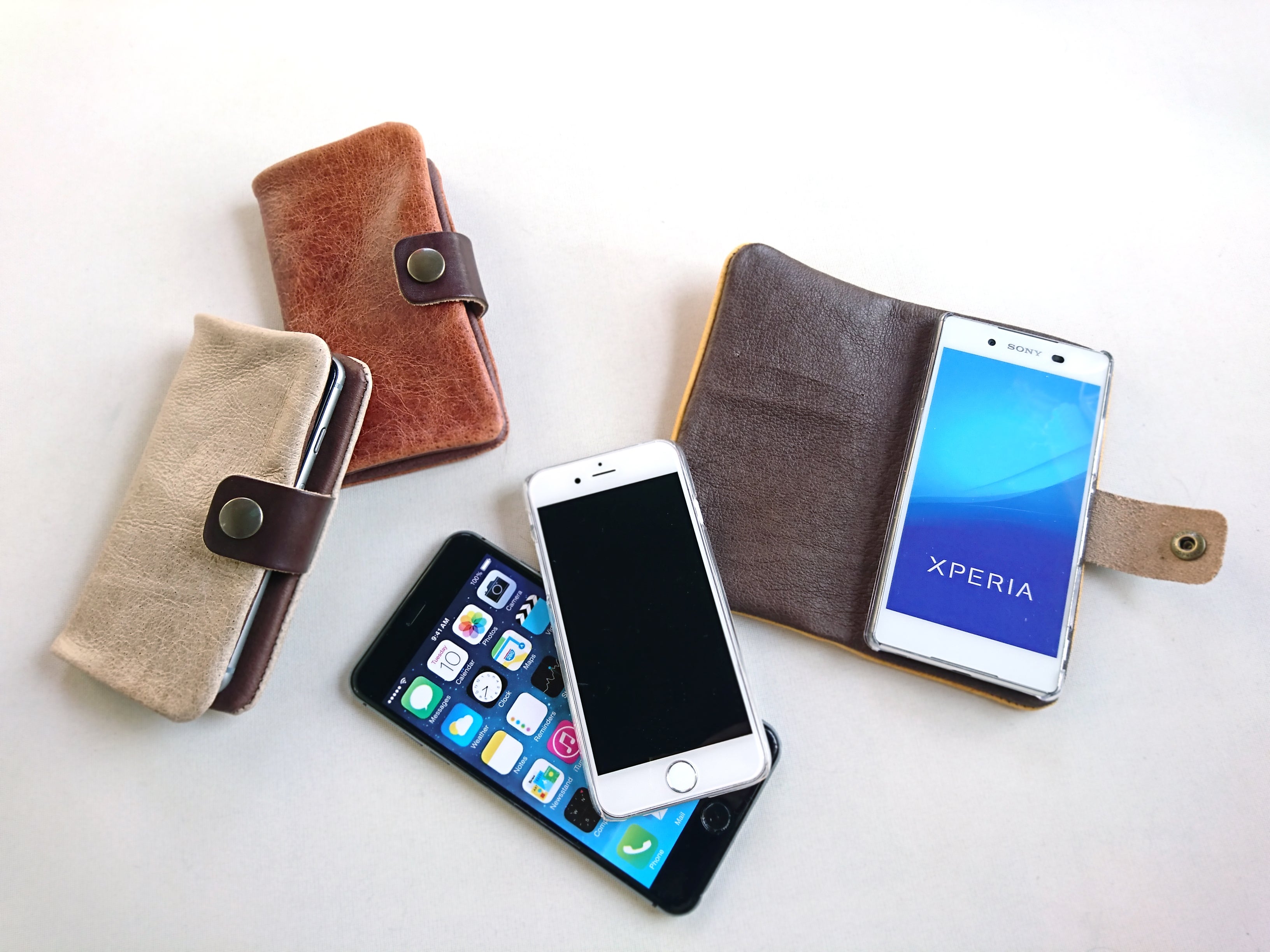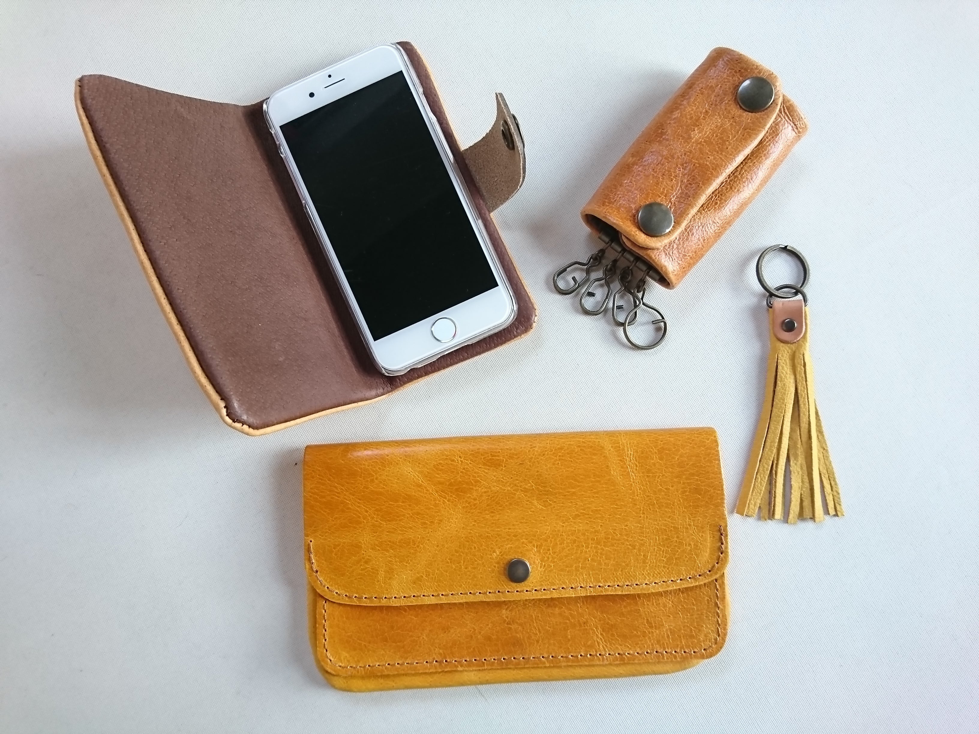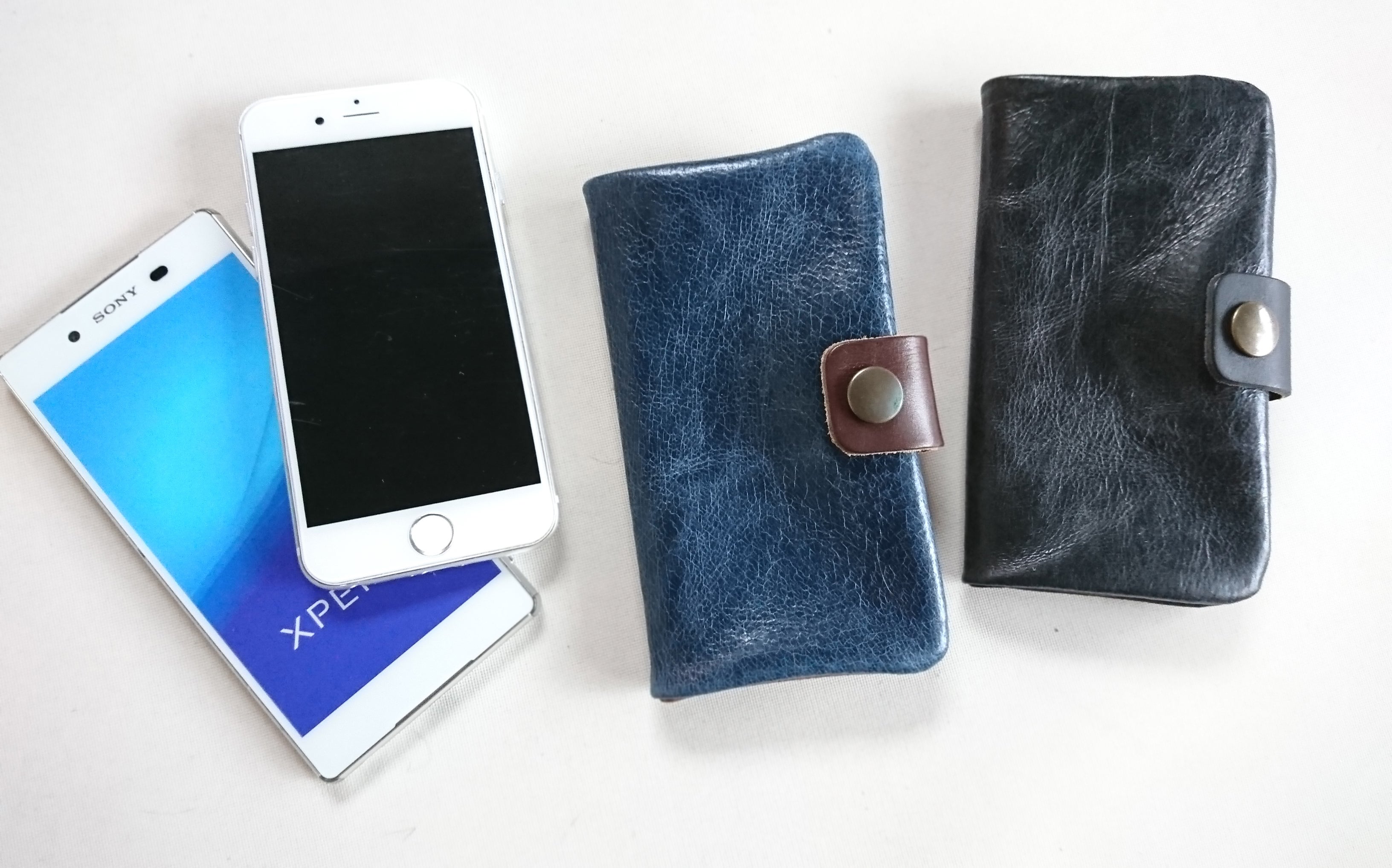 お腹に近い部分は非常に柔らかく、お財布には向いていませんが、他の小物には向いています。大量に余ってしまった革を使って、スマホケースをお作りいたします。