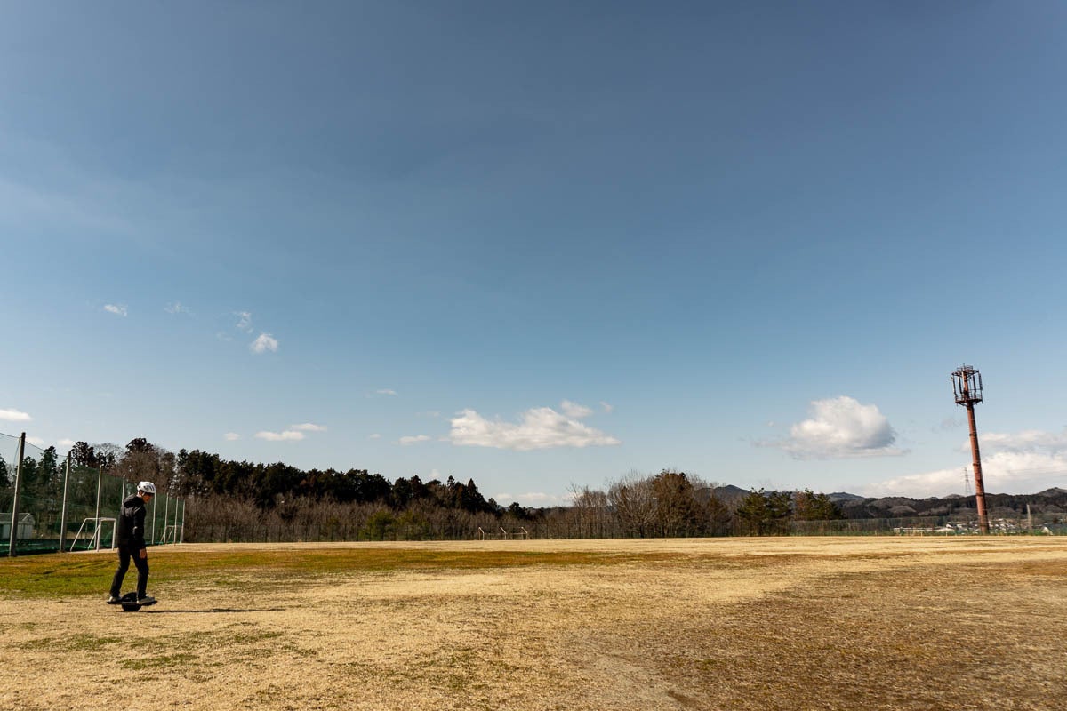 ワンホイールはゴーカートに使用されるタイヤが一本中央についており、サイドボードに足を乗せ重心移動で前に進むという画期的なモビリティです。