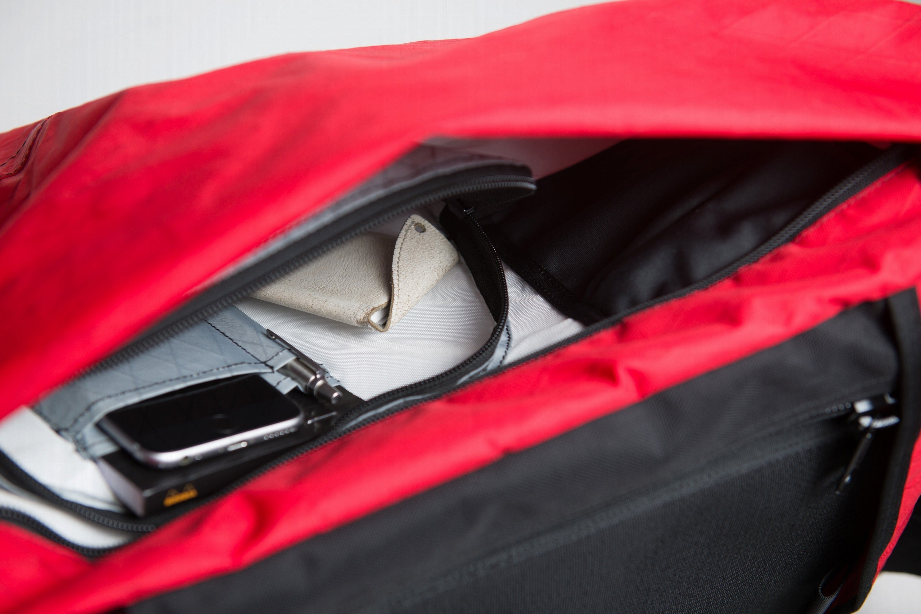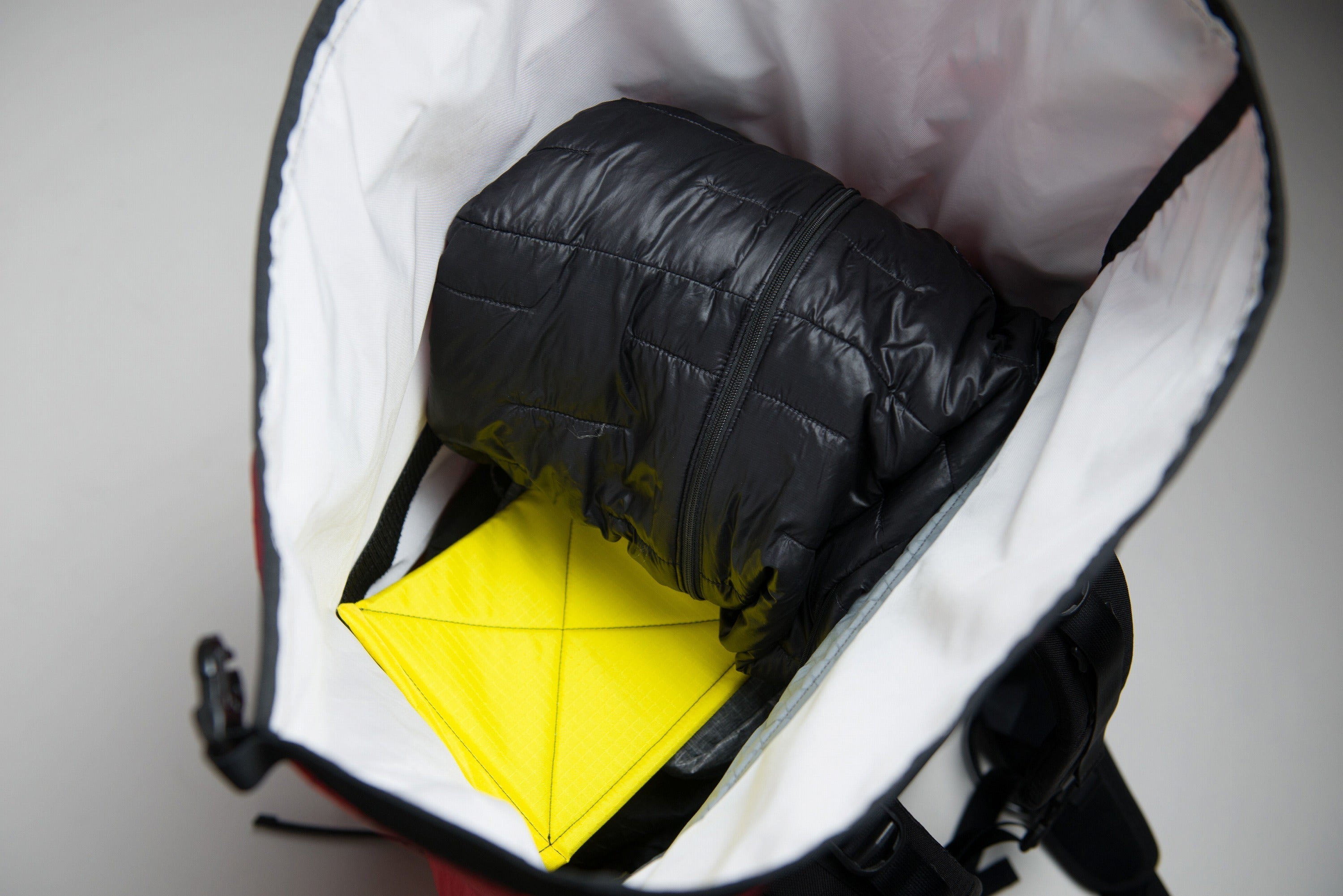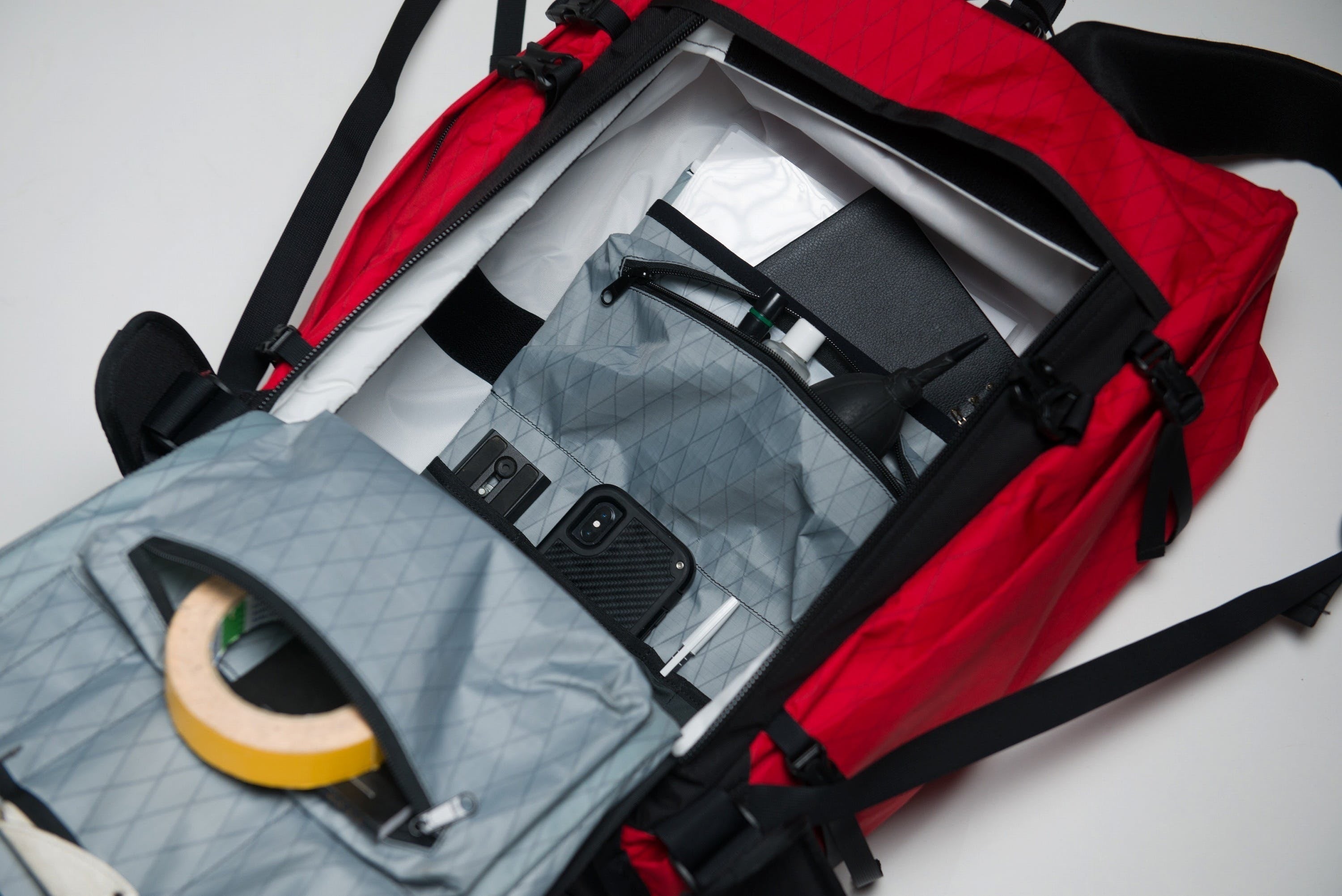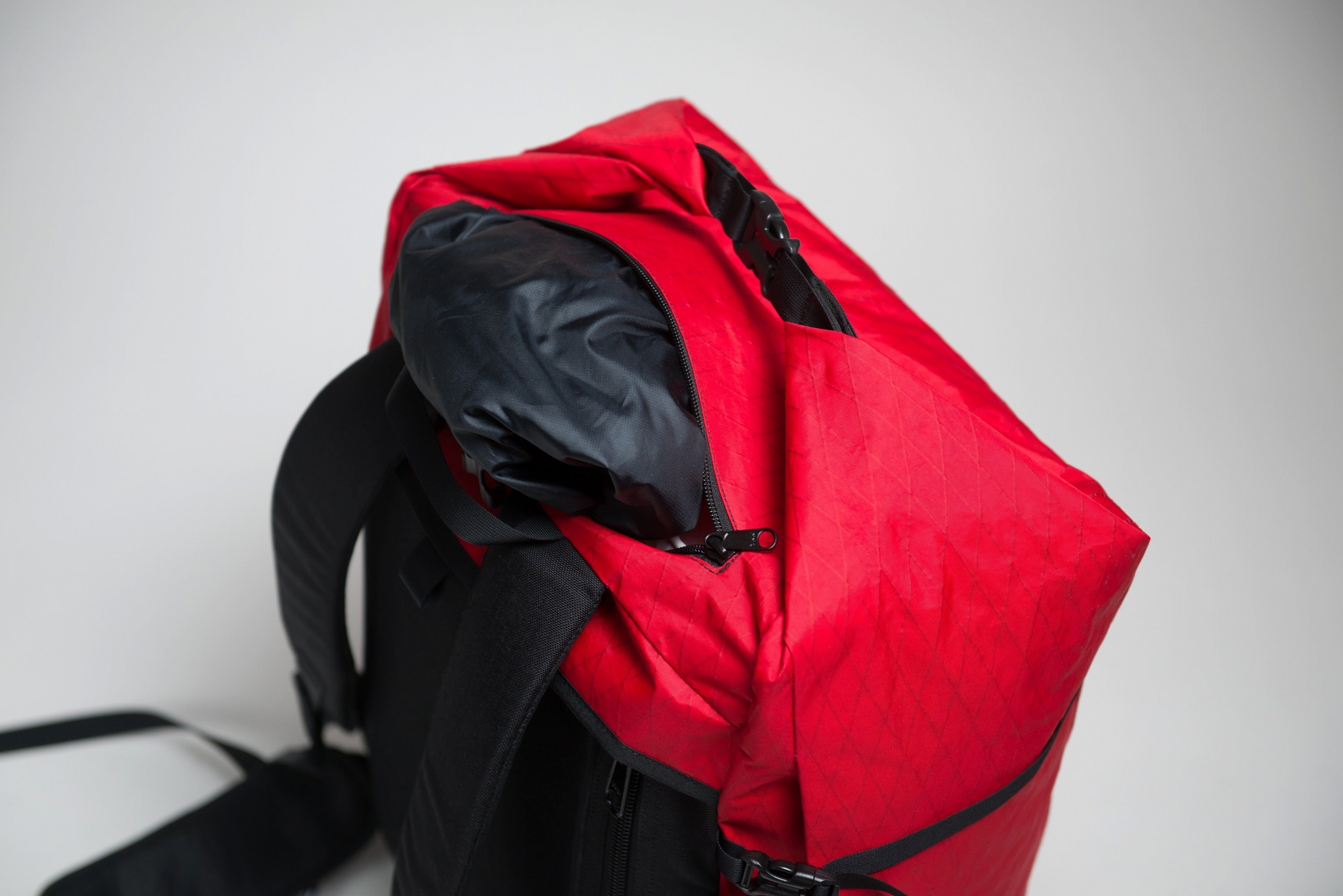 ボトムは、「ホールバッグ」と呼ばれる、ロッククライミングのロングルートで用いられる頑丈な荷揚げ用バッグと同じ形状を踏襲。これにより、まるでバケツの底のようにフラットな底面を得られ、荷物のパッキングがしやすく、また地面に置いたとき自立しやすくなっています。