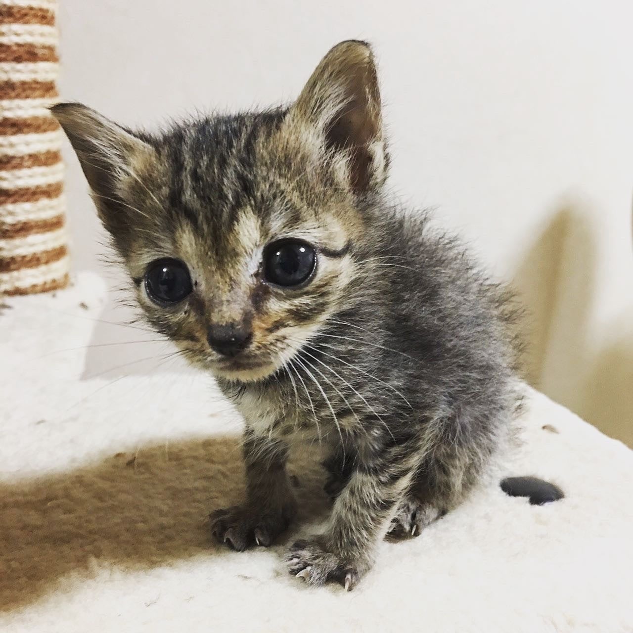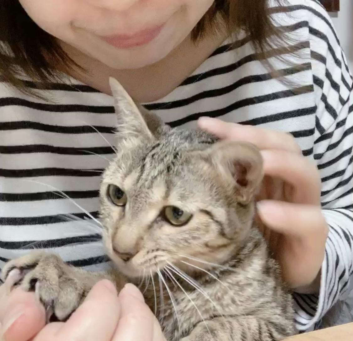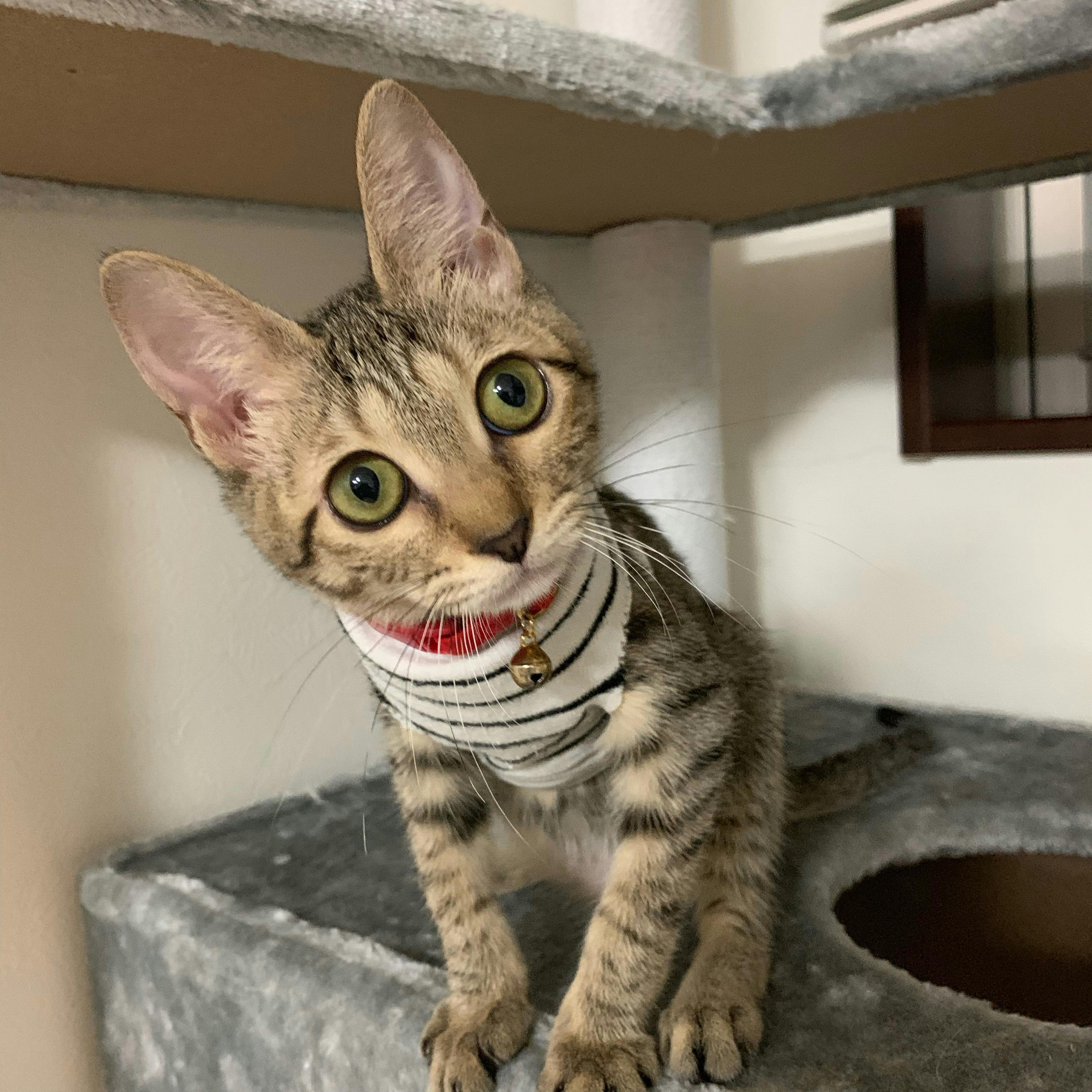 保護猫活動をする友人宅にきた時からなぜかずっと気になっていて、小さいながらも一生懸命生きている姿にこちらも応援したくなって2019年9月30日にうちの子になりました。